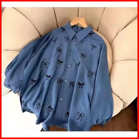 Atasan Kemeja Wanita Pita Coquette Bordir Katun Poli Micro Kemeja Motif Pita Bordir Elegan