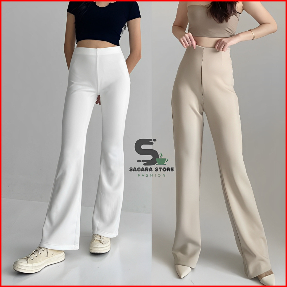 Flare Pants - Highwaist Flare Pants Scuba - Highwaist Kulot Cutbray Wanita Vol.1