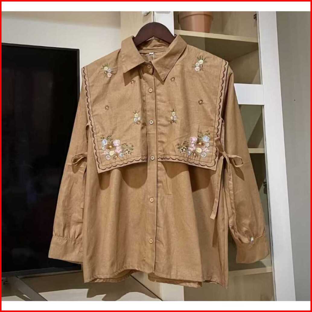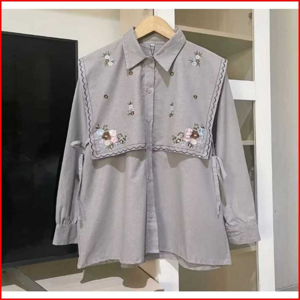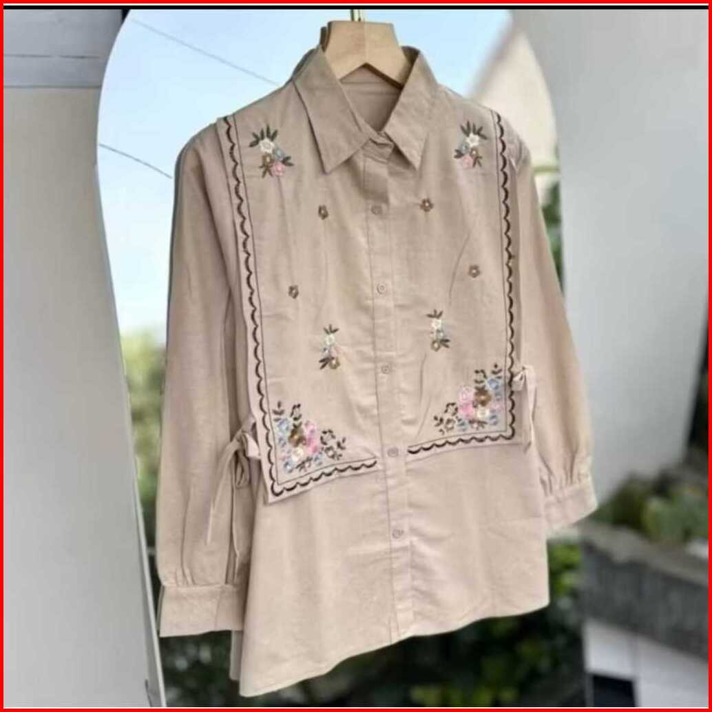 Baju Atasan Wanita Terbaru Bordir Bunga Kemeja Wanita Jumbo
