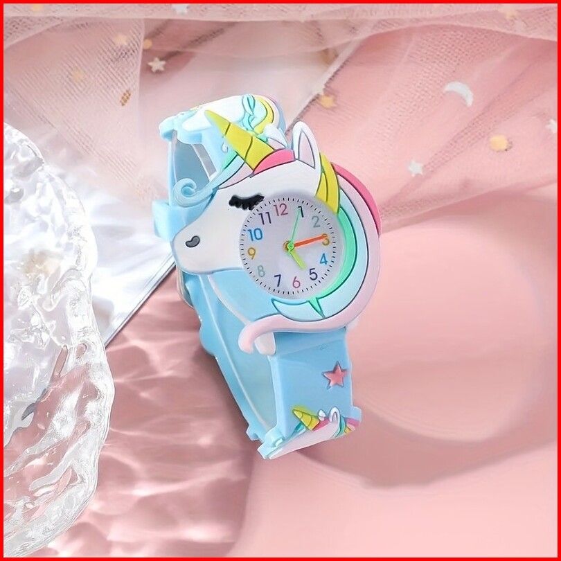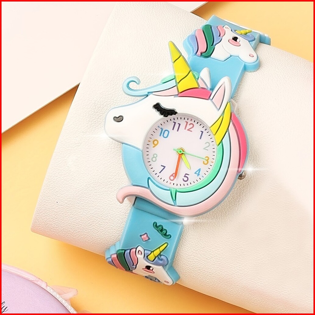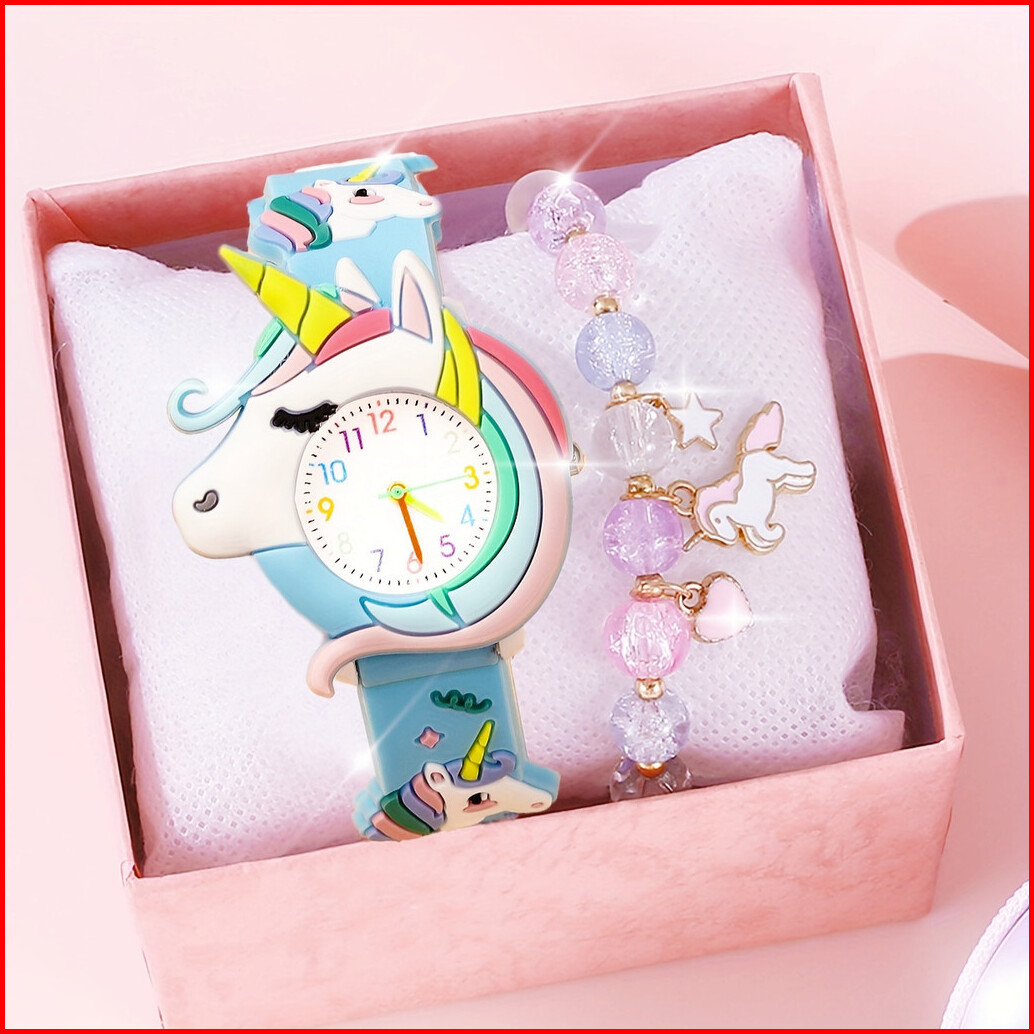 3pcs Jam Tangan Silikon Penunjuk Unicorn Kreatif Dengan Gelang Dari Kuarsa Untuk Anak-anak Dengan Kotak Hadiah