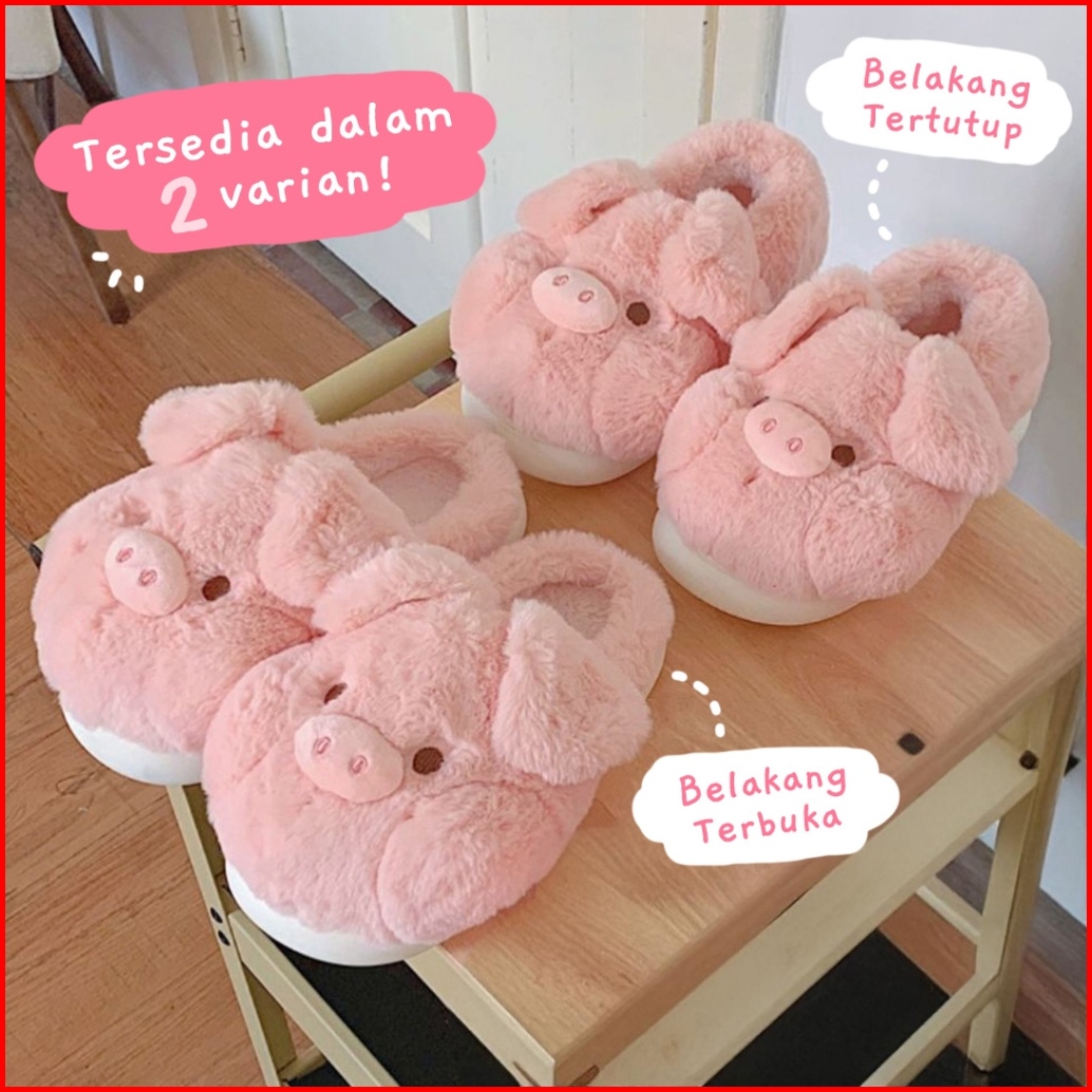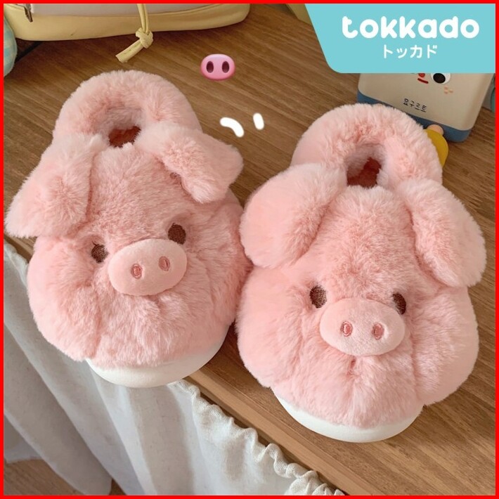 Tokkado Nakai Sandal Rumah Empuk Bulu Boneka Kamar Wanita Piggy Lucu