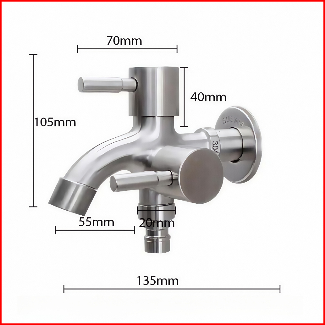 Sus304 Kran Combo Keran Tembok Shower Kran Mesin Cuci Kamar Mandi Kran Serbaguna Keran Tembok Wall Tap Double Cabang Mes