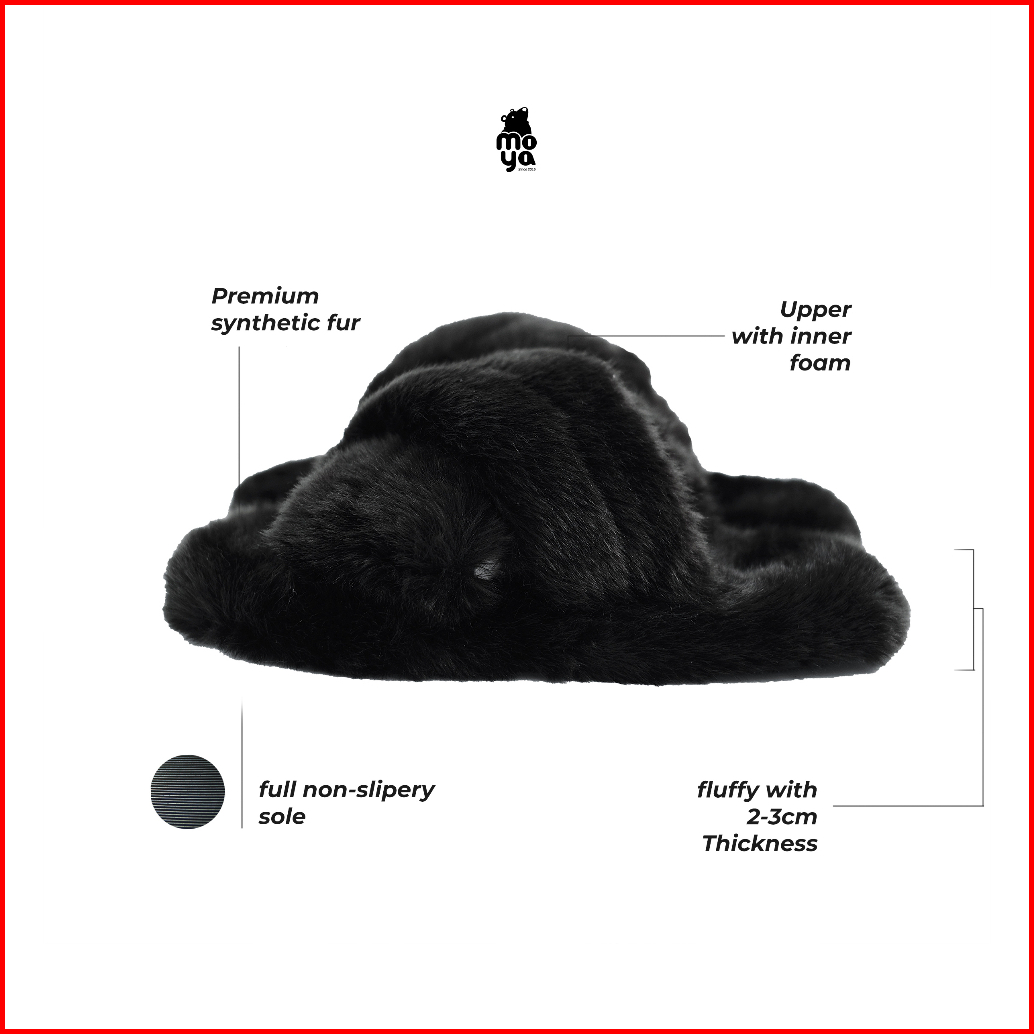Sandal Rumah Bulu Fur Sandal For Gift Atau Hampers - Panthera Black X - By Moya