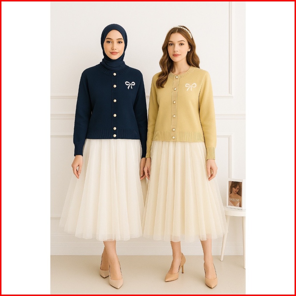 Dailyofprincess Clara Cardigan Rajut Wanita Bordir Pita Kancing Depan