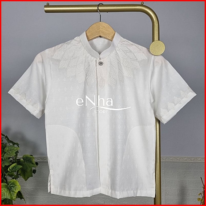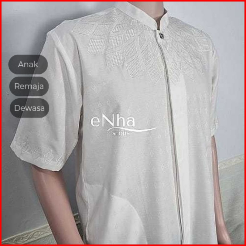 Baju Koko Dewasa Baju Koko Remaja Baju Koko Anak Katun Warna Putih Tulang Bordir Bisa Couple Ayah Dan Anak Lengan Pendek