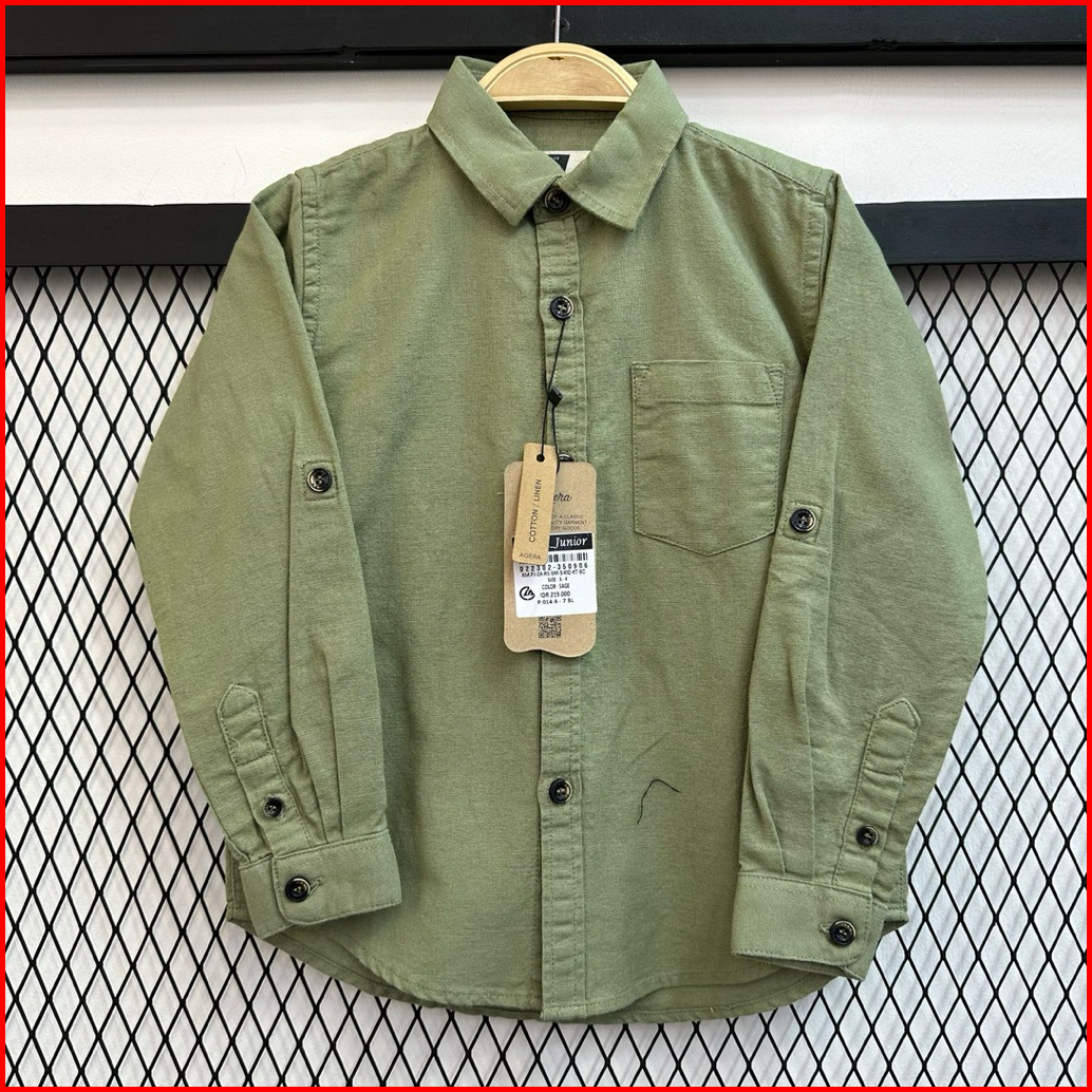 Kemeja Krah Anak Laki Laki Premium Kantong Tempel Agera Kids Pakaian Kemaja Kerah Anak Laki Laki Lengan Panjang