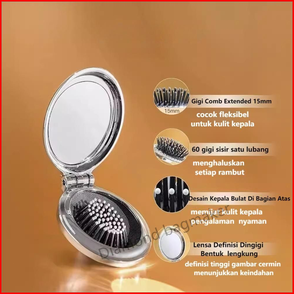 Sisir Lipat Portable 2in1 Dengan Sisir Kaca Karakter Imut Untuk Rambut Harian Dm002 - Tahan Haircare - Mini