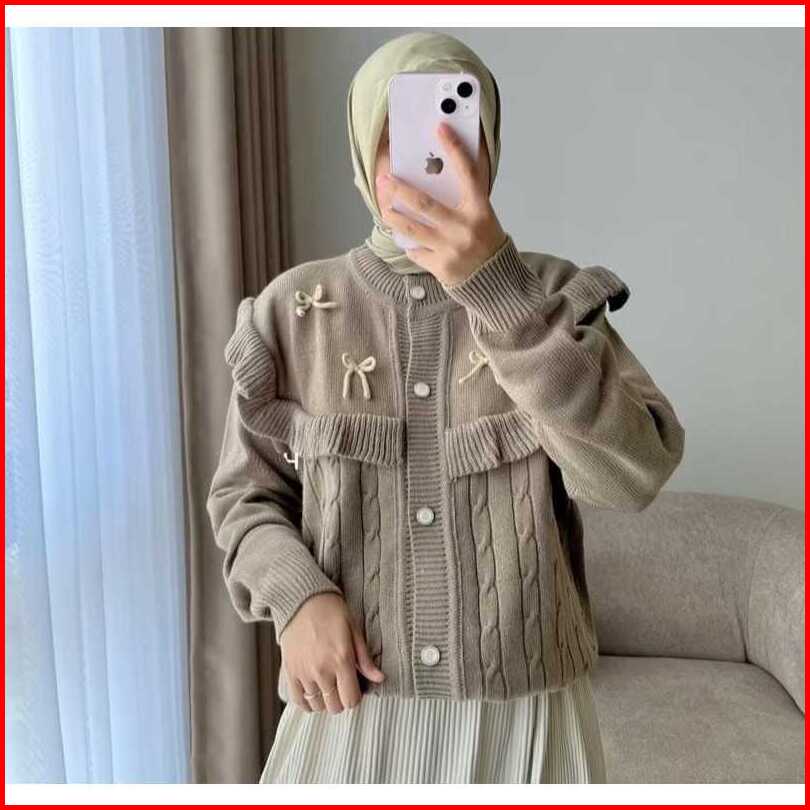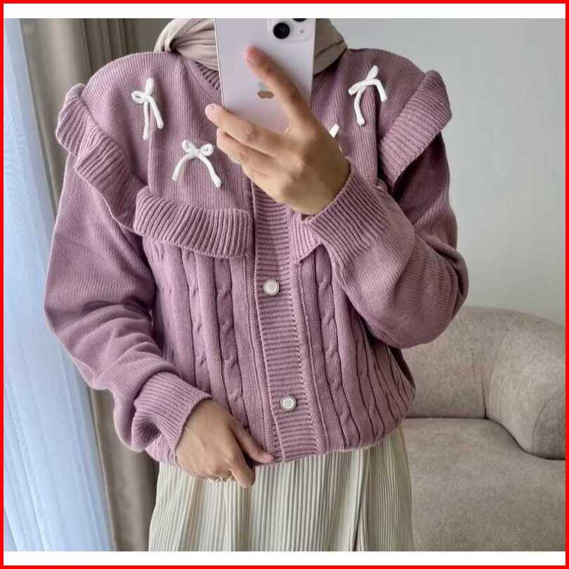 Darika Cardy Cardigan Wanita Terbaru Rufle Cardy Kardigan Rajut Motif Pita