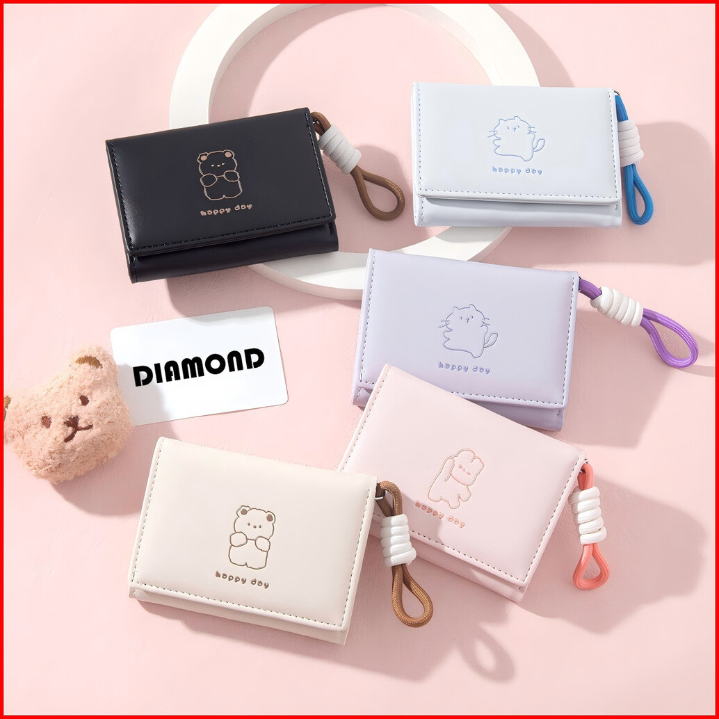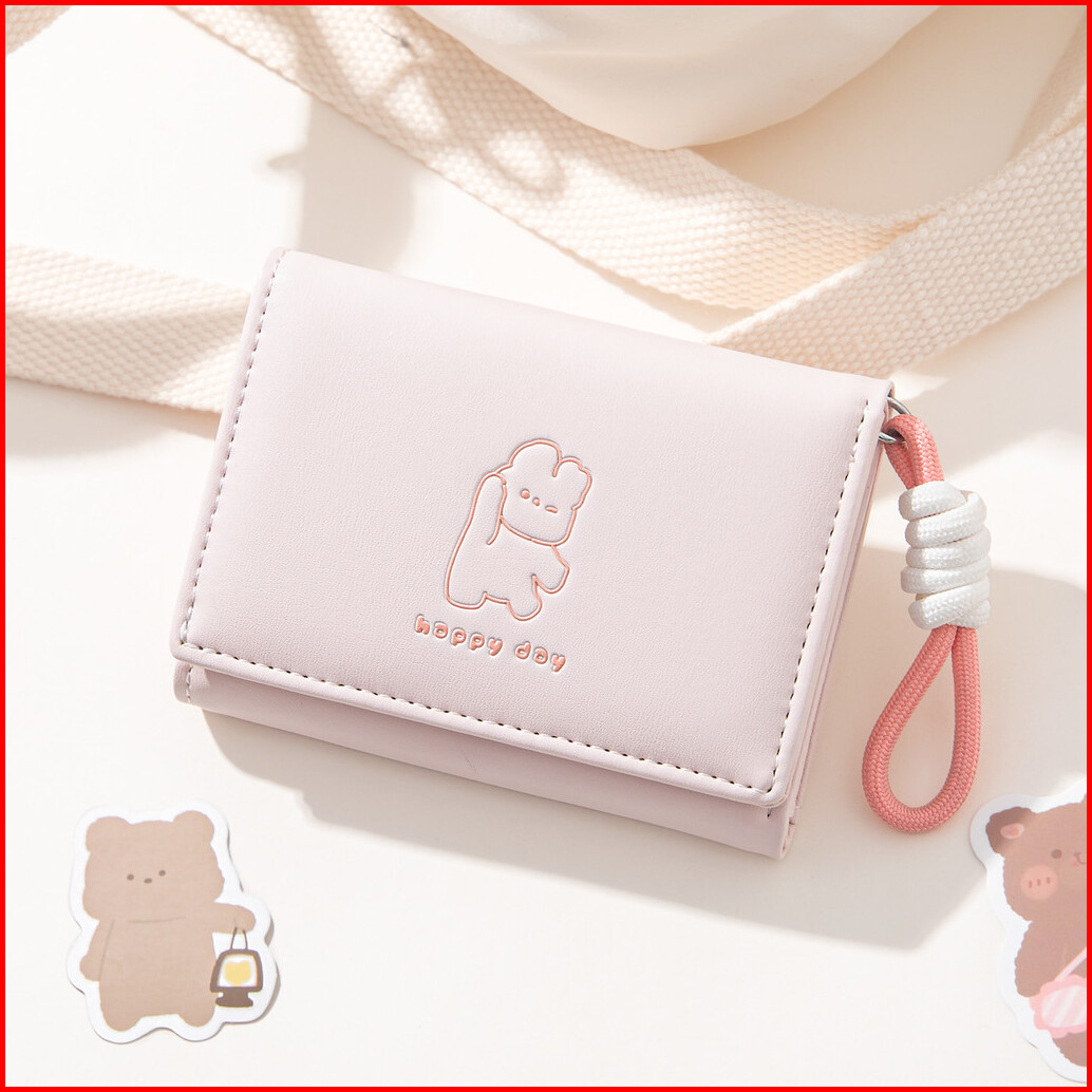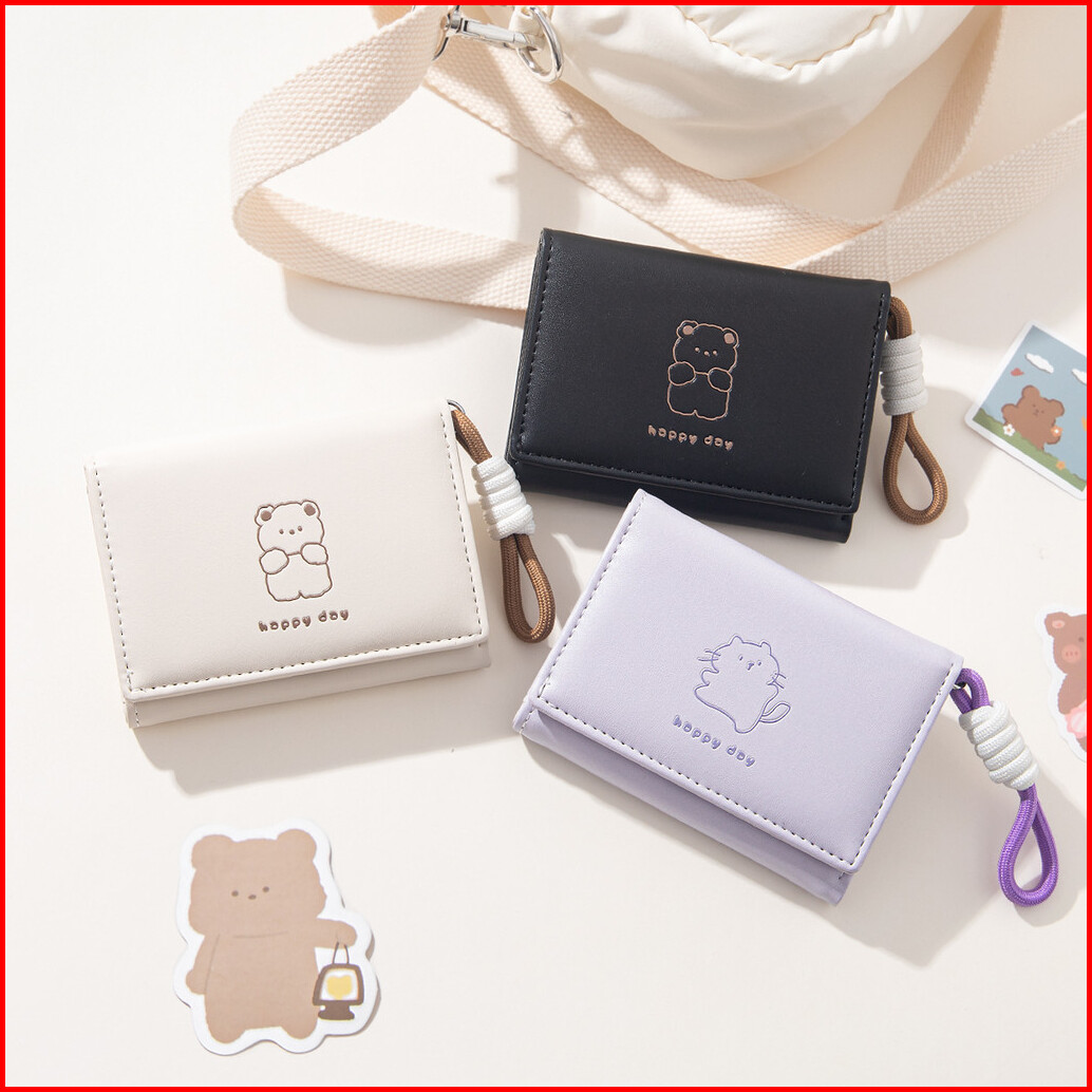 Dompet Koin Dompet Bunga Rantai Modis Beruang Lucu Card Bag Pu Kulit Lipat Tiga Dompet Koin Tinggi