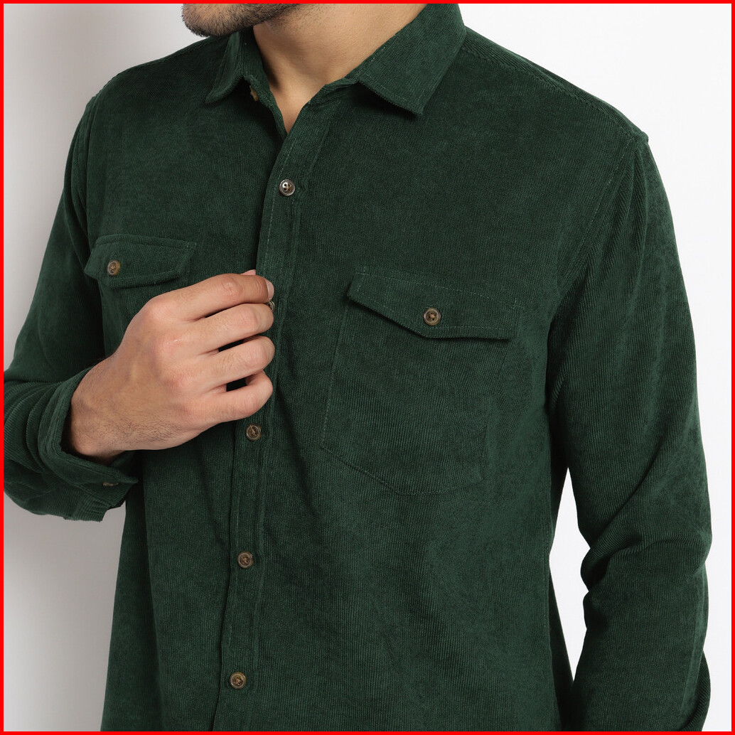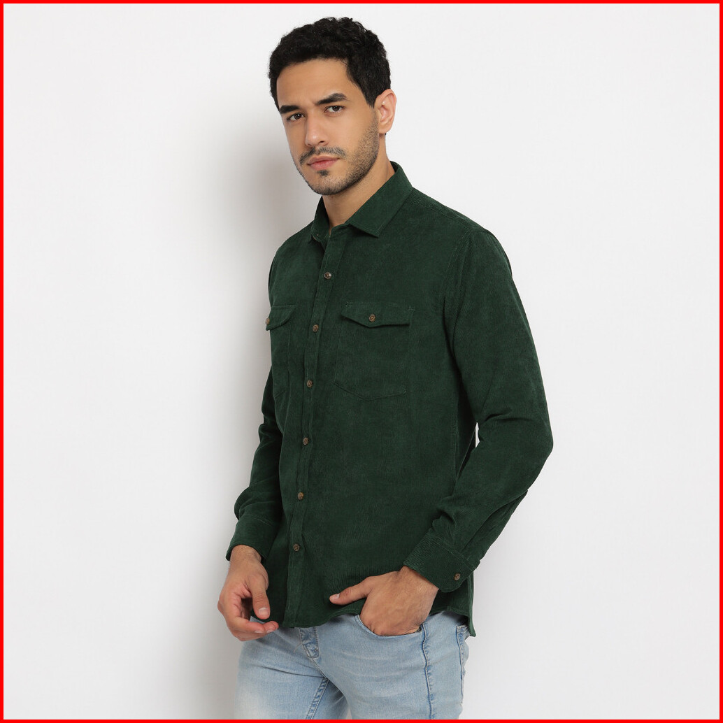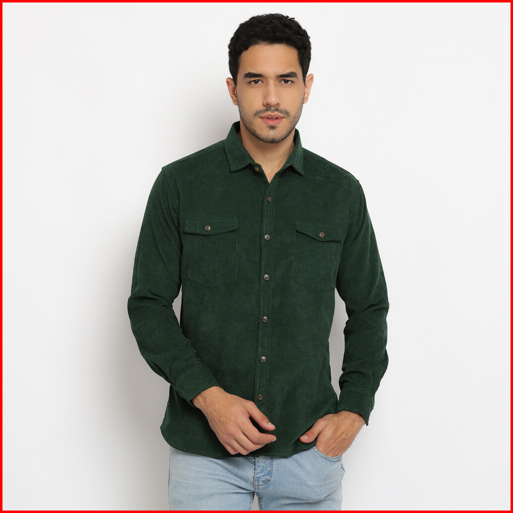 Kemeja Polos Pria Kodorai Lengan Panjang Kantong Dua Warna Hijau Olr274