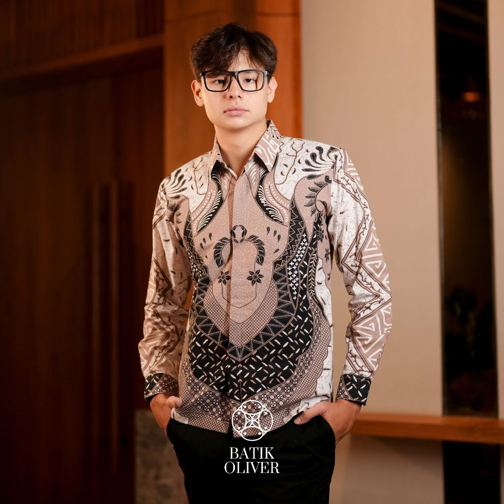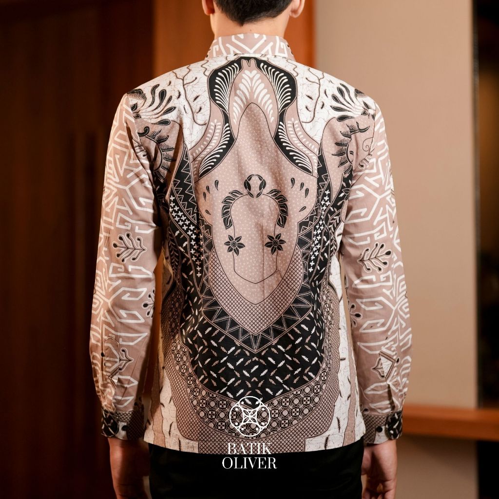 Kemeja Batik Oliver Motif Mahadri - Kemeja Batik Pria Slimfit Lengan Panjang Lapis Furing Premium