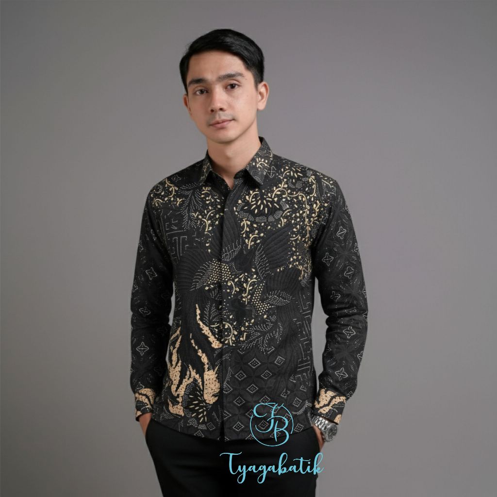 Kemeja Batik Pria Baju Lengan Panjang Slimfit Lapis Furing Batik Tyaga 0241 Bahan Katun Premium Elegan Motif Formal Warn