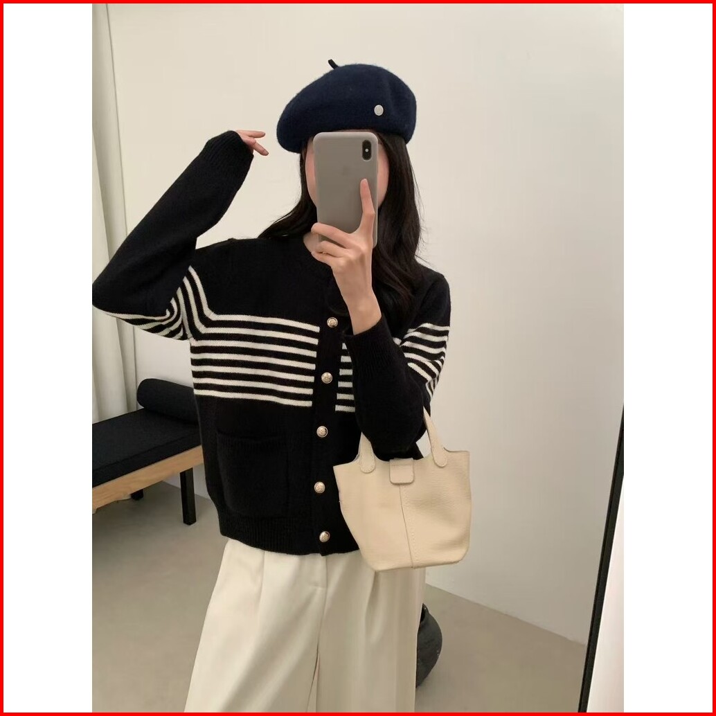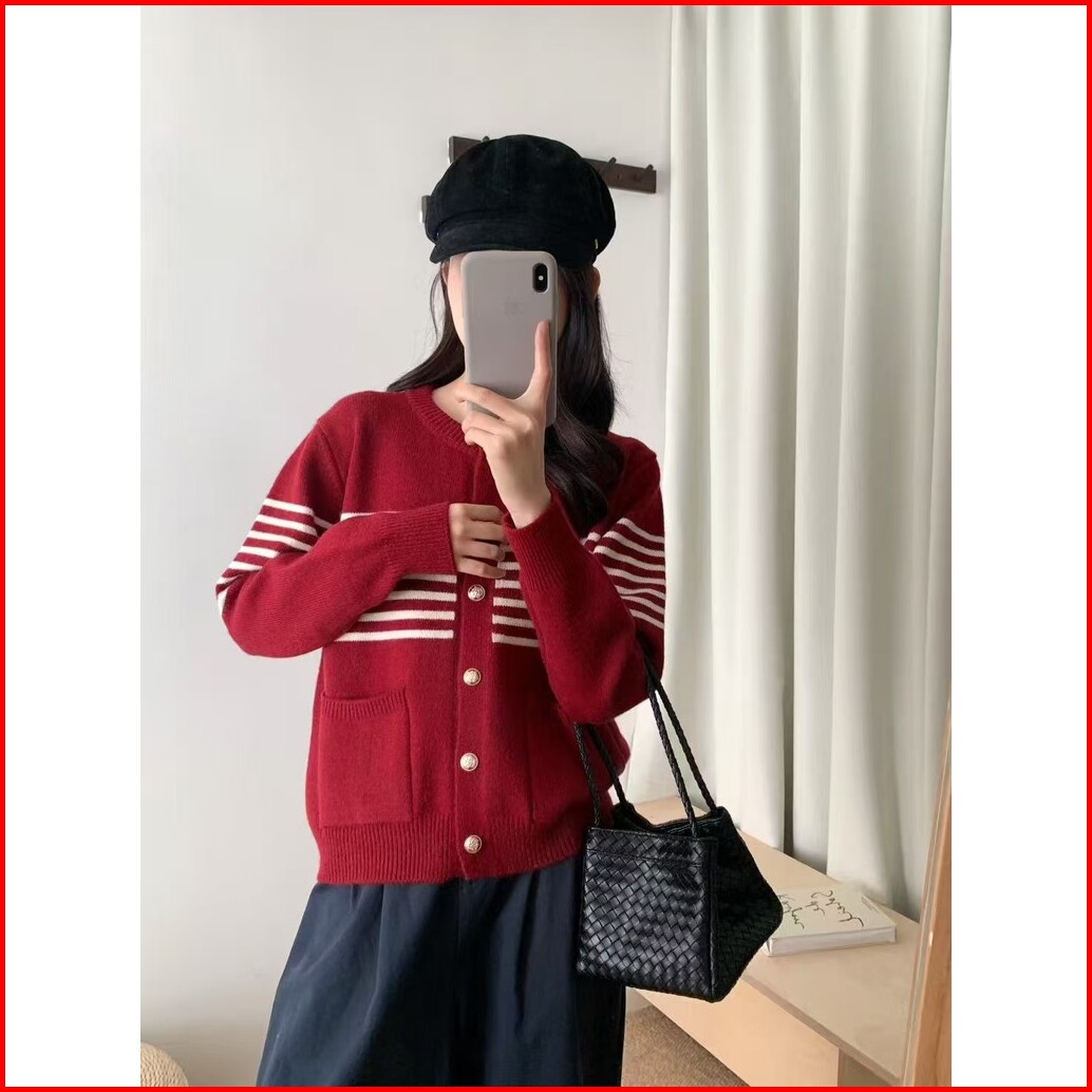 Kira Striped Cardigan Top - Atasan Cardigan Knit Premium