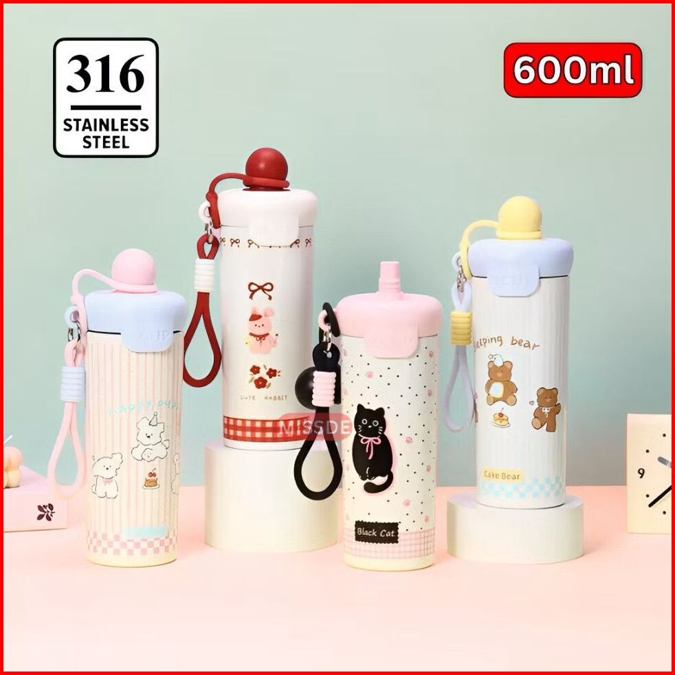 Outred Tumbler Karakter Lucu Mode Sedot Sedotan 650ml Stainless Steel K2117 Botol Minum Anak Dewasa Anti Bocor Termos Cu