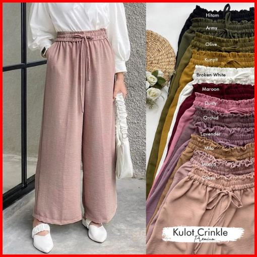 Hitam, Navy, Maroon, Coksu, Sage, Mustard, Lavender, Army, Coklat, Grey, Denim, Dusty Pink, Tiramisu, Wardah, Emerald, Stabilo, Purple, Aquamarine, Baby Pink, Fucia, Biru Elektrik, Salem, Light Green, Teal Blue, Teracotta, Lilac, Lemon, Broken White, Random Warna