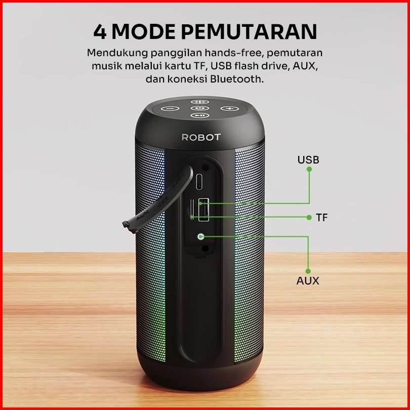 Robot Speaker Bluetooth Superbass 10w Ipx4 With Rgb Light Speaker Wireless Waterproof Rb510 Original - Garansi 1 Tahun