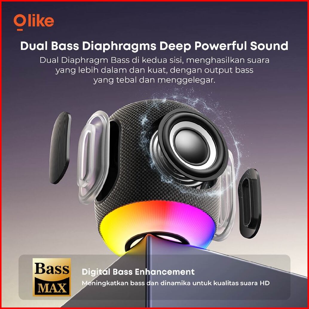 Olike Speaker Bluetooth Sv2 Rgb 1800 Mah Playing Time 12 Jam Power 10 Watt Stereo Bass Suara Jernih