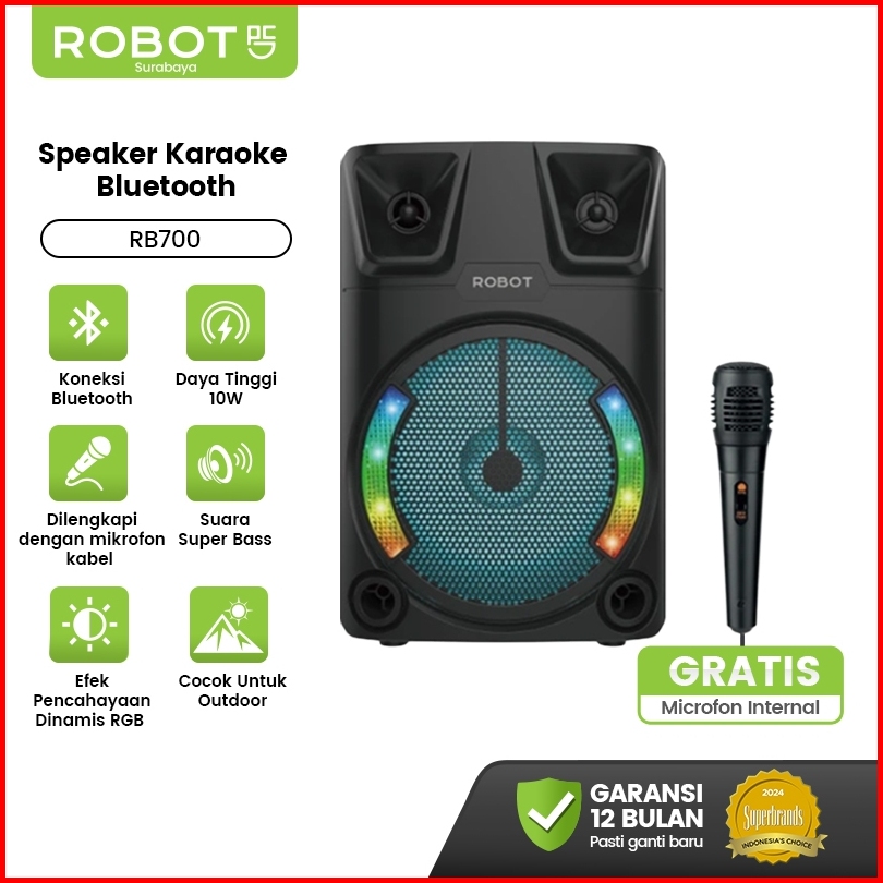 Robot Speaker Karaoke Super Bass Bluetooth Karaoke Mic Cahaya Lampu Rgb Rb700 Outdoor 10w Garansi 1 Tahun