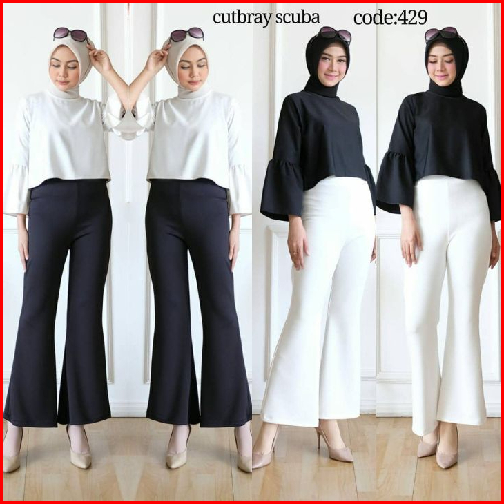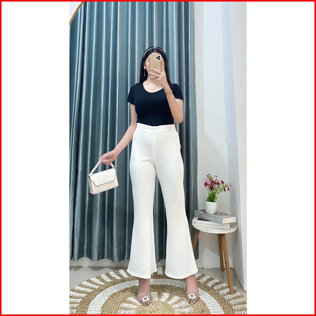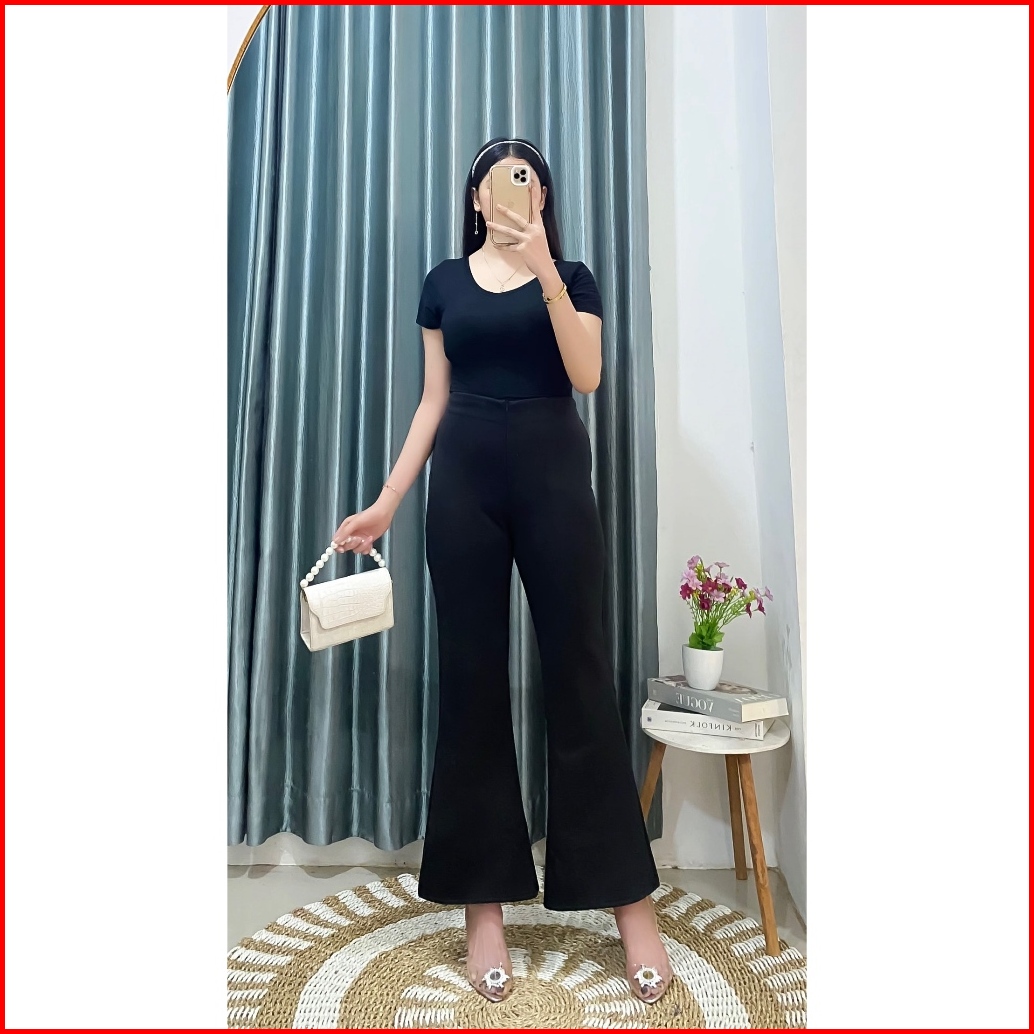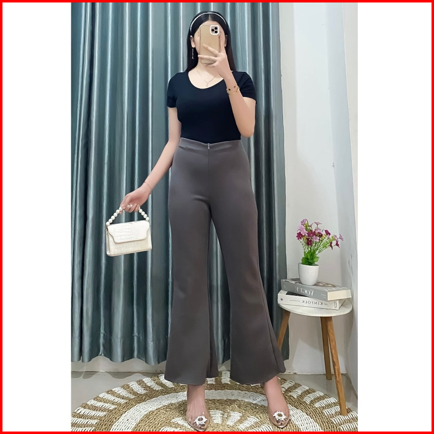 Flared Pants Celana Cutbray Pols Highwaist Wanita Terbaru Kekinian Bahan Scuba Premium Bb 40-105