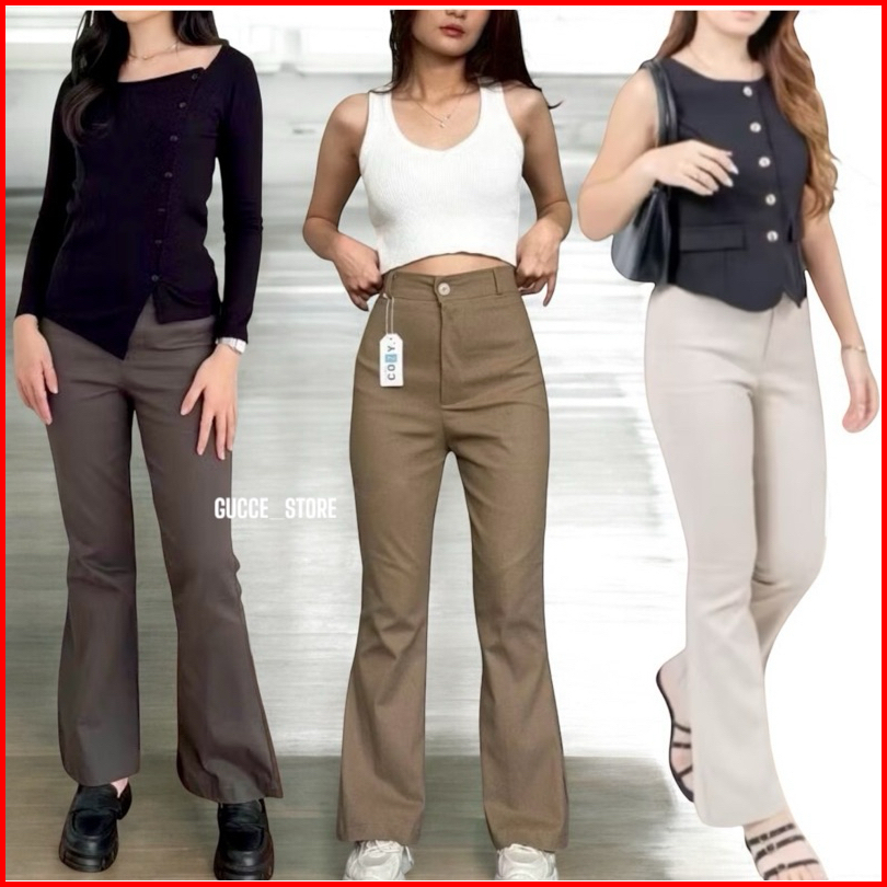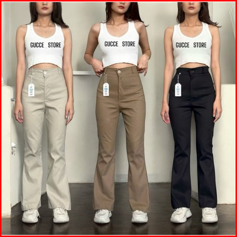 Celana Flare Pants-highwaist Hw Cutbray Bahan Katun Chinos Strechi Melar Ngaret