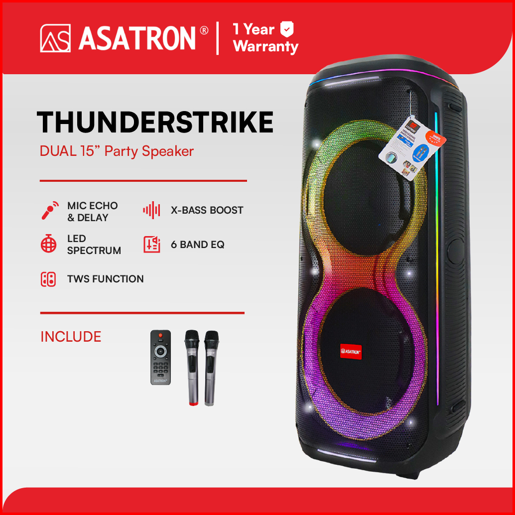 Asatron Thunderstrike Dual 15 Inch Bluetooth Party Speaker With 2 Wireless Mic