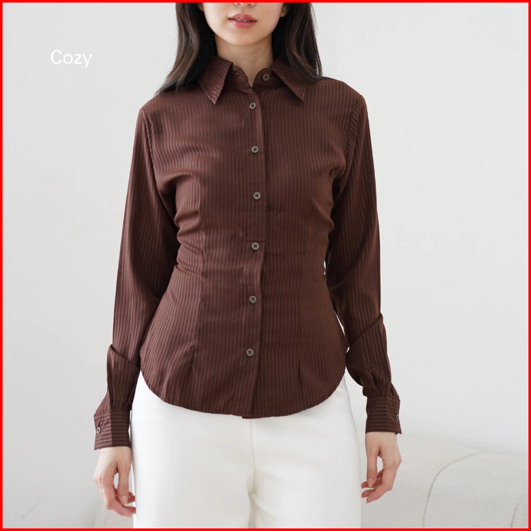 Atasan Wanita Model Fit Body Lengan Panjang Bahan Semi Wall Premium Kekinian Kemeja Wispie Terbaru