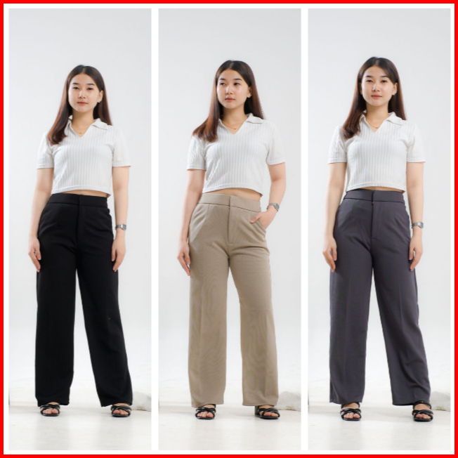 Cozie Pants Hw Cullote Pants - Rib Knit Pants - Celana Kulot Wanita - Hak 2 - Celana Anti Kusut 388