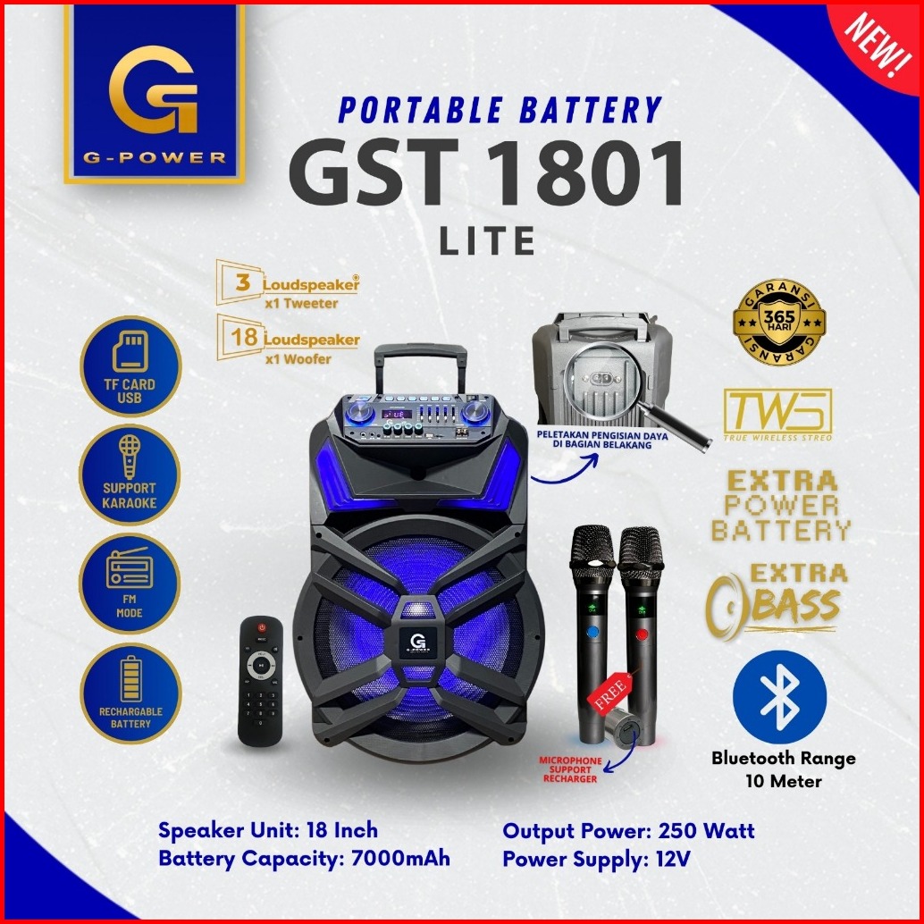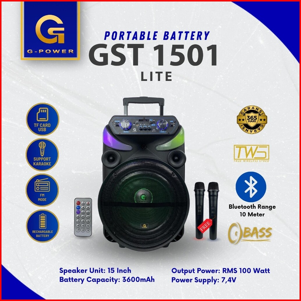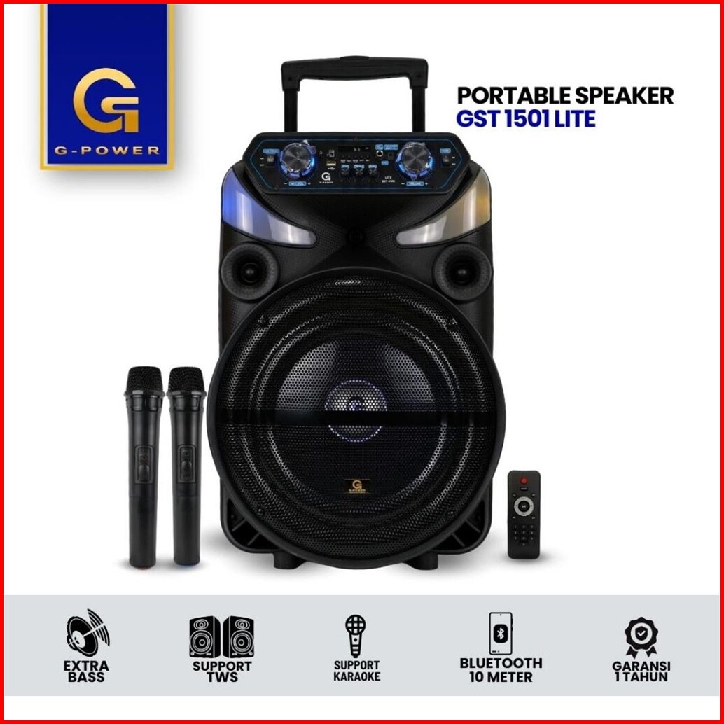 G-power Speaker Bluetooth Gst-1501 Lite 15 Inch - Speaker Karaoke Portable 2 Mic Wireless Bass Jernih Garansi Resmi