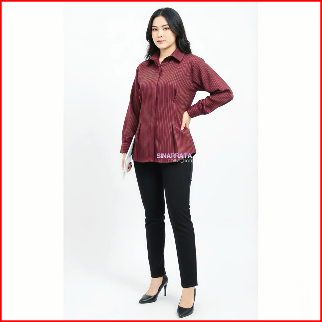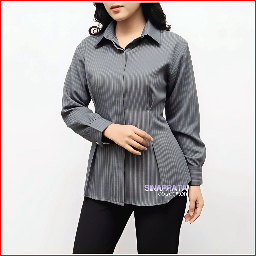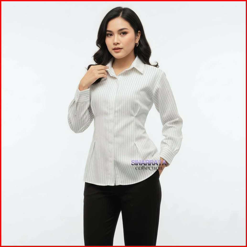 Kemeja Stripe Wanita Look Lengan Panjang Alba Top Salur Basic Formal Wanita - Sinarrata Store