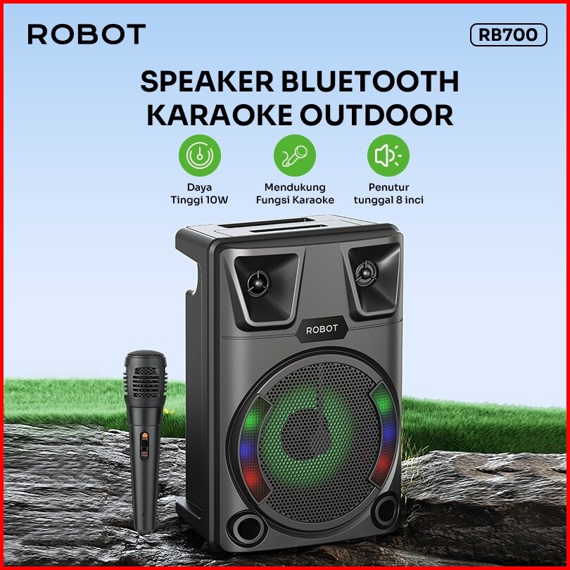 Robot Speaker Karaoke Bluetooth 5.3 Outdoor Super Bass 10w Free Mikrofon Kabel Speaker Outdoor 8 Inch Rgb Light Rb700 Or