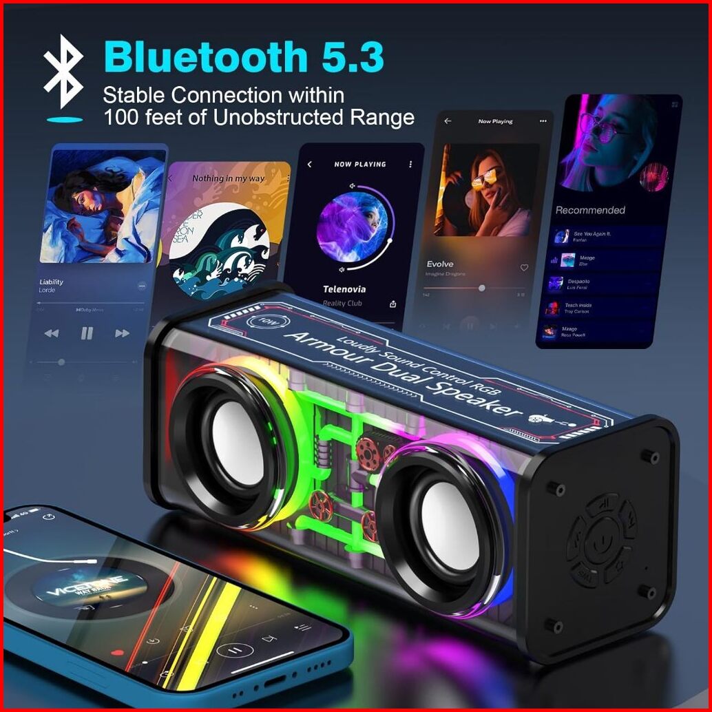 Cloema V88 Mecha Speaker Bluetooth Subwoofer Baja Kecil Transparan Audio Portabel Nirkabel Rgb 7 Color Light Speaker Blu
