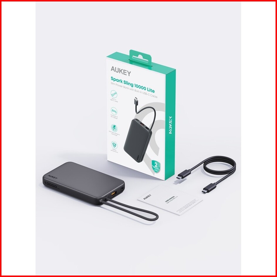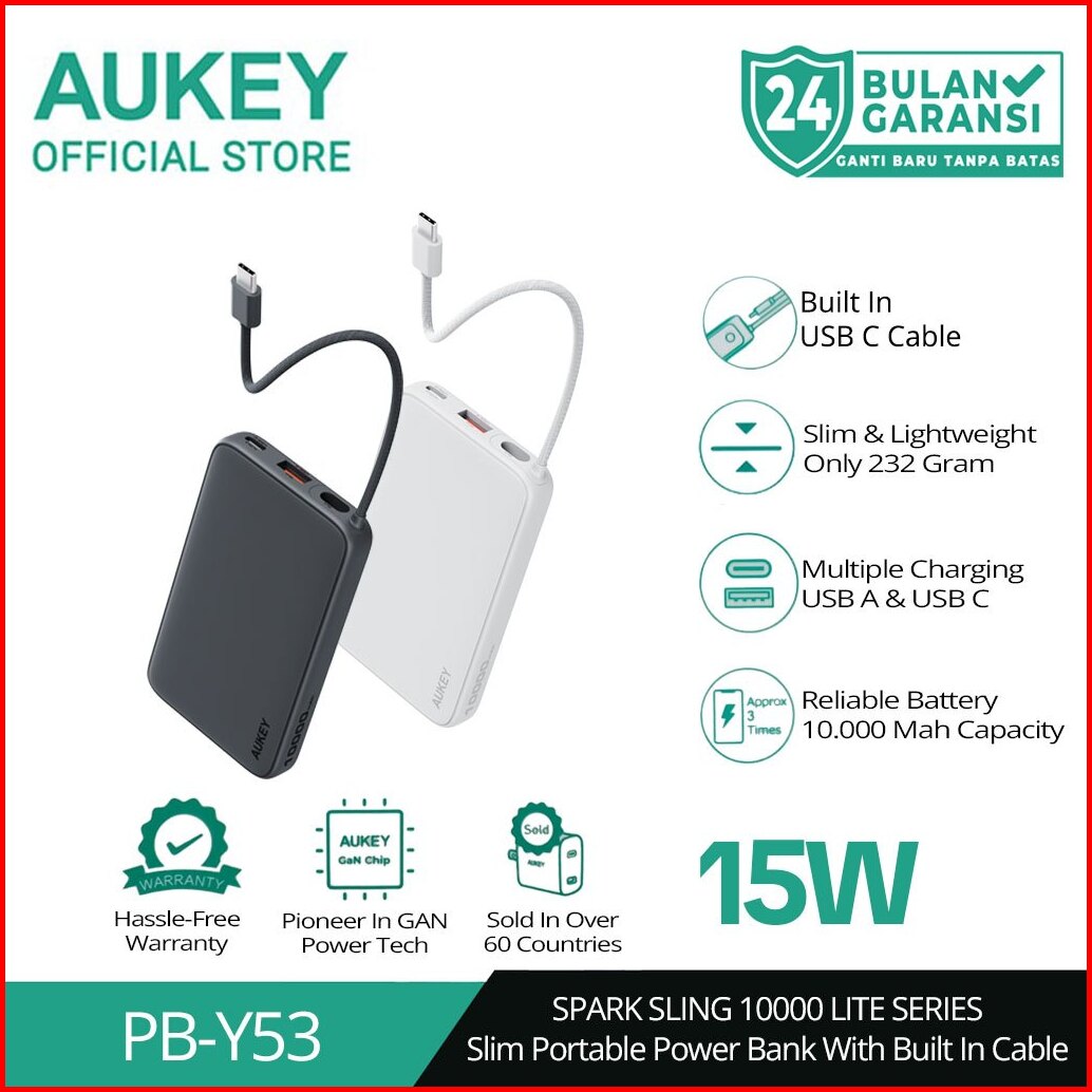 Aukey Powerbank 10000mah 15w Built In Cable Fast Charging Spark Sling Lite Series Pb-y53