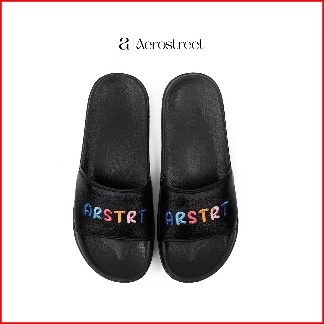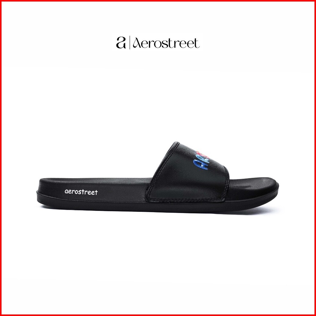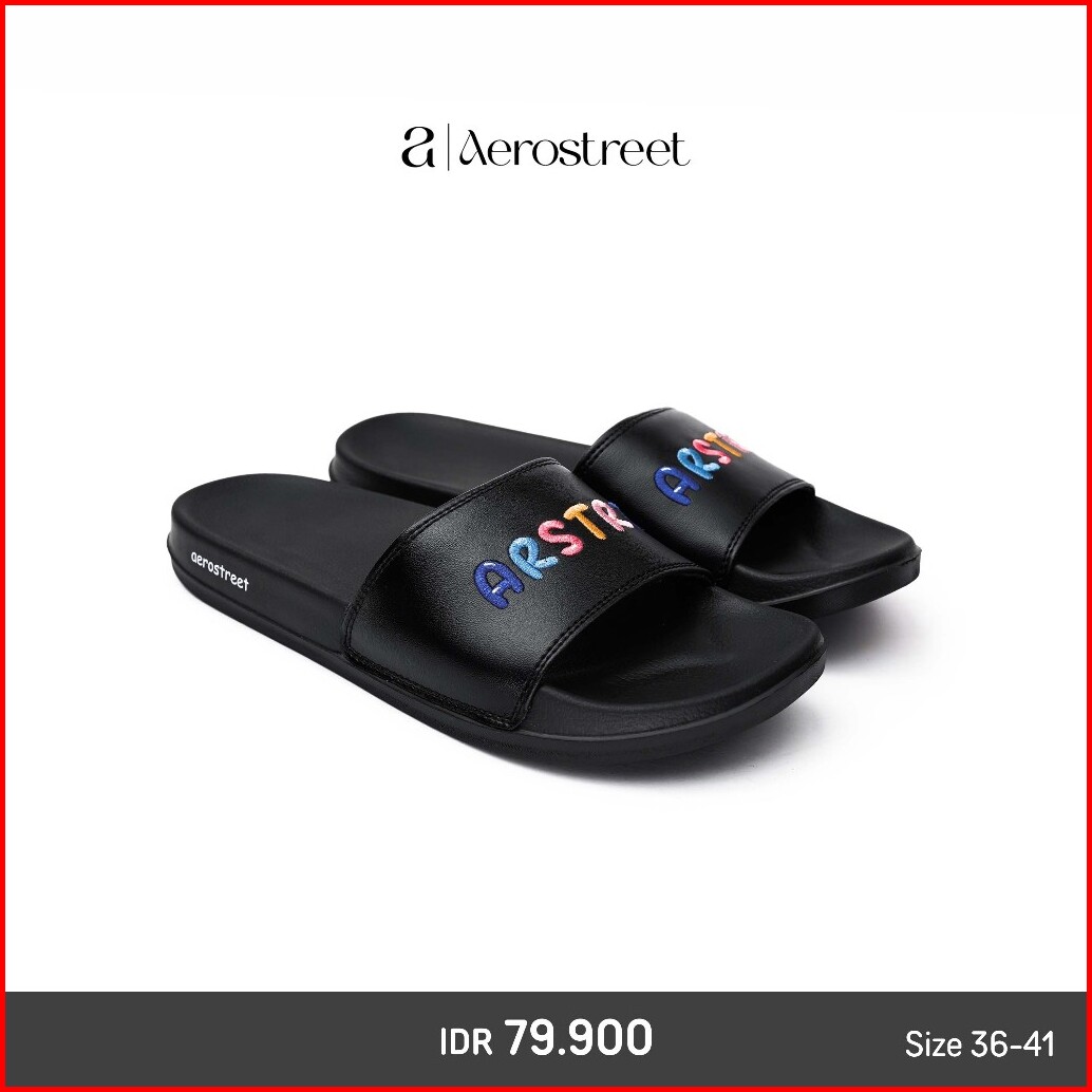 Aerostreet 36-41 Enzy Hitam Hitam - Sandal Slip On Pria Wanita Babaa