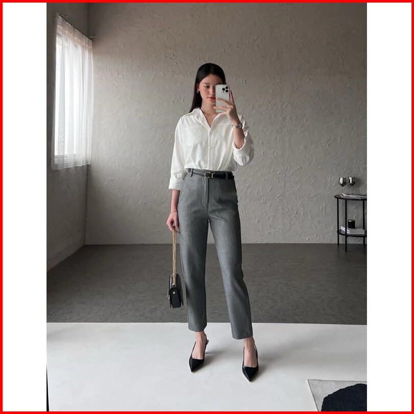 Alexa Pants Celana Kerja Wanita Kantor Highwaist Bahan Semiwool Jatuh Nyaman