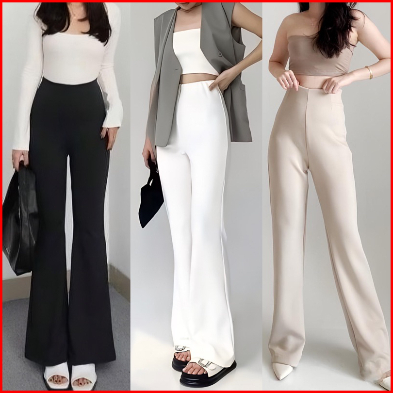 Flare Pants Scuba - Celana Panjang Scuba Wanita Long Cullote Pants Highwaist Loose Flare Cutbray