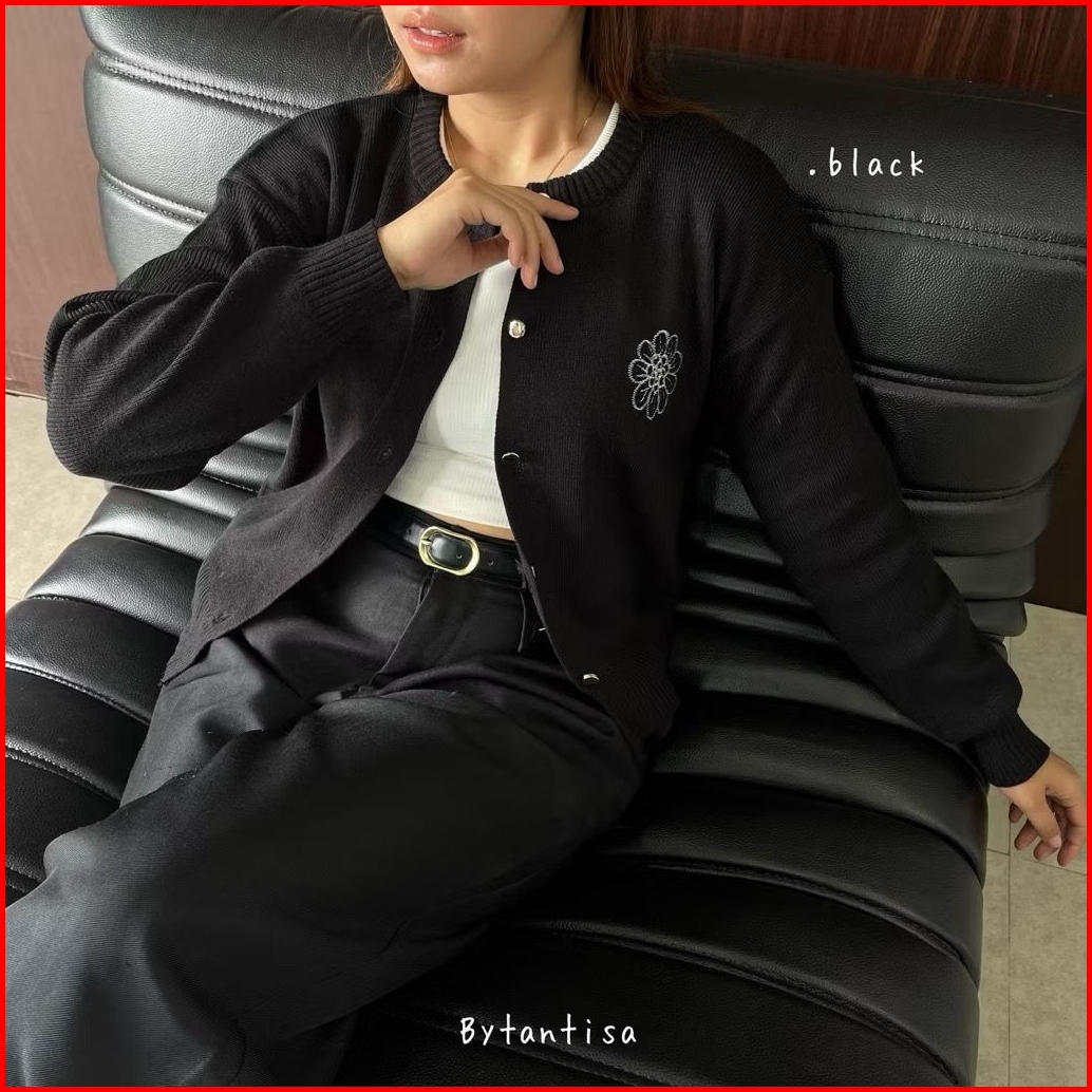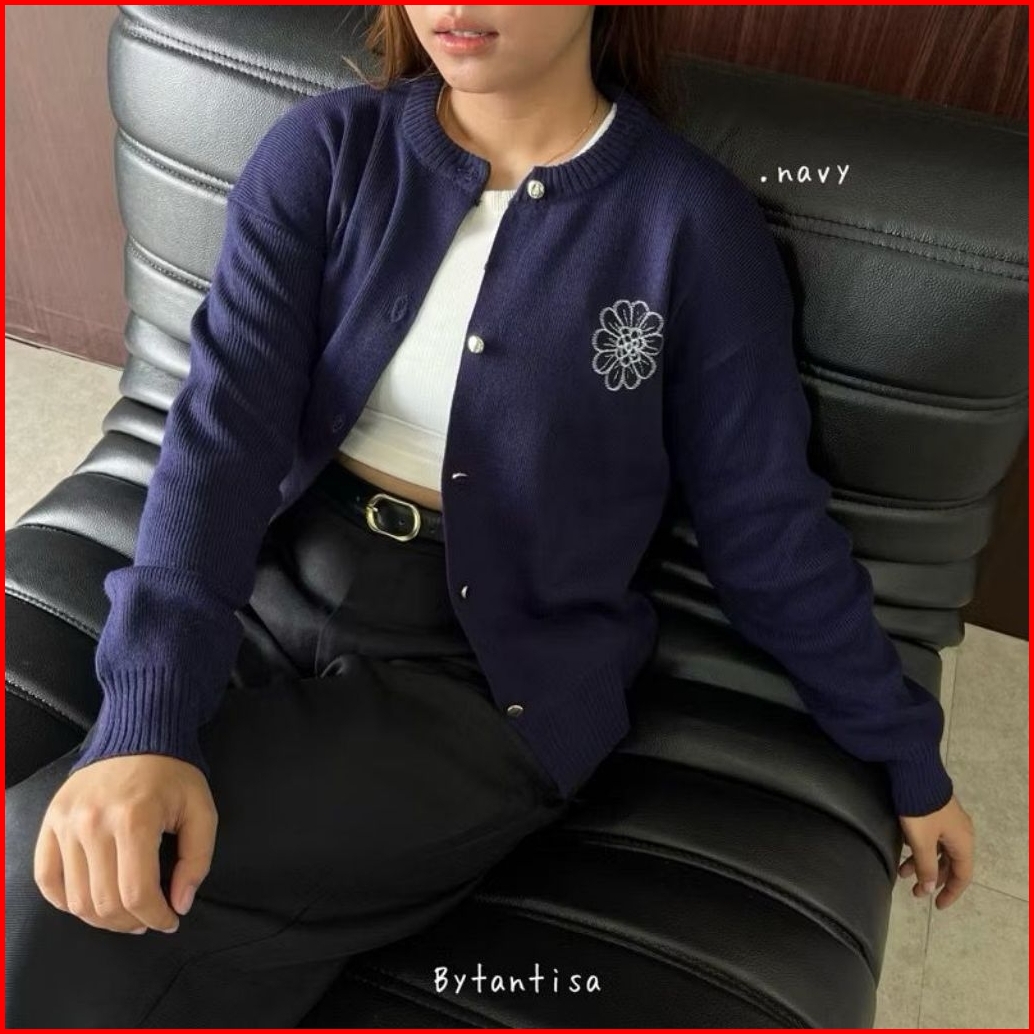Cardigan Rajut Flower Bordir Cute Bahan Lembut Premium Korean Style Tebal Terbaru