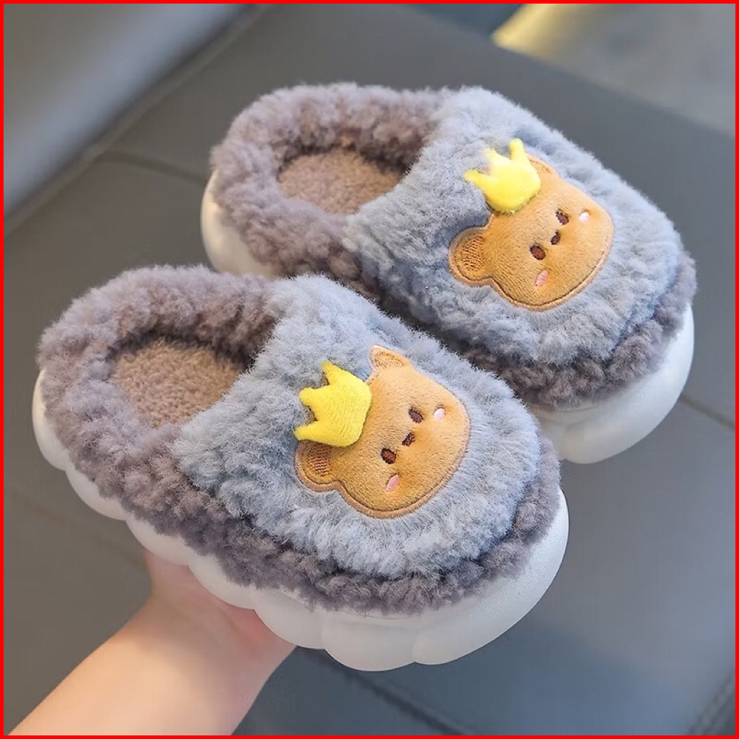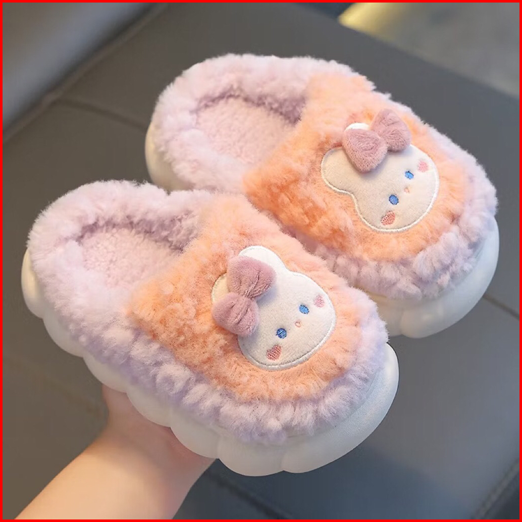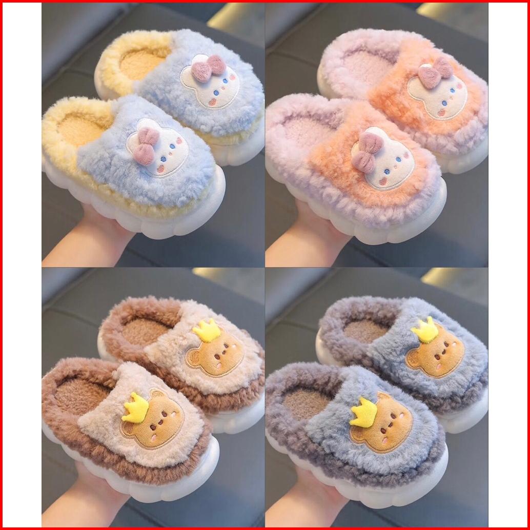 Sendal Bulu Boneka Rumah Anak Dewasa Sol Karet