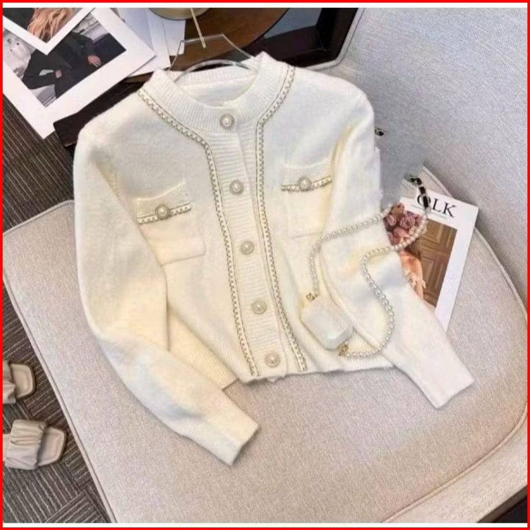 Cardigan Wol Rajut Wanita Korean Style List Fuul Mutiara