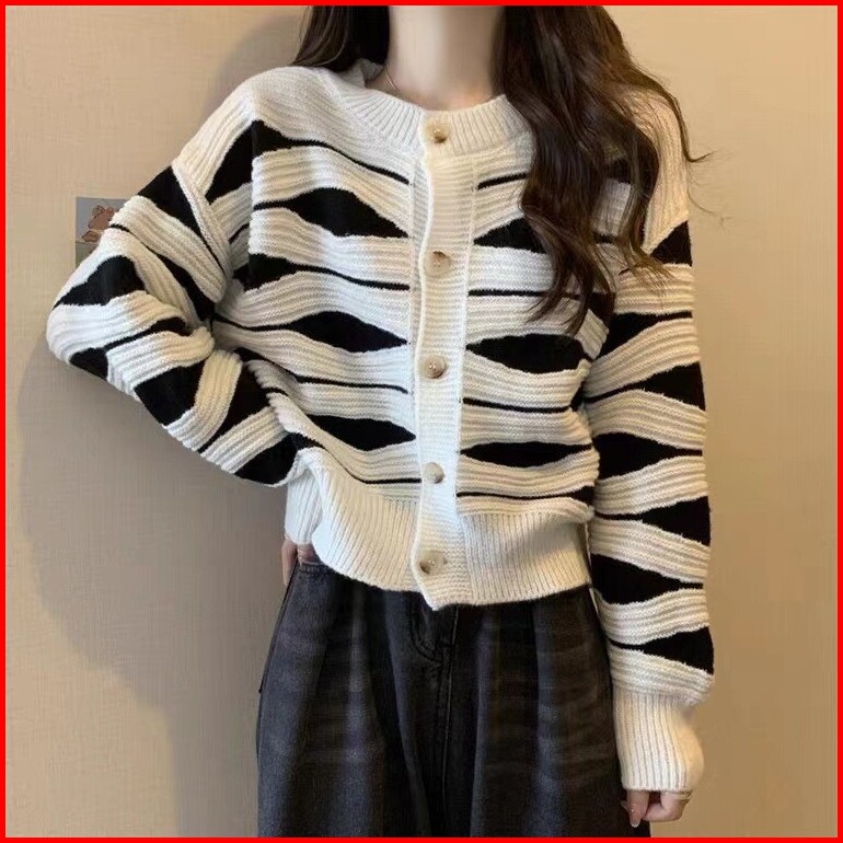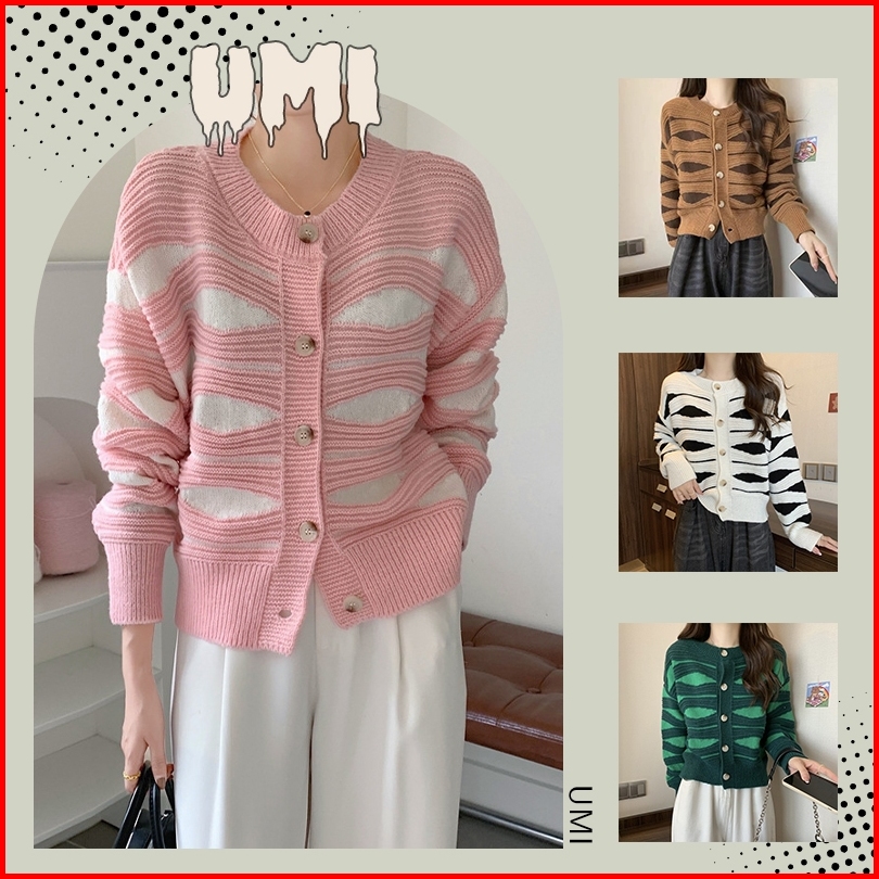 Promosi Harga Rendahumi-cardigan Rajut Sweater Korean Santai Round Neck Setrip Baju Knitwear Wanita