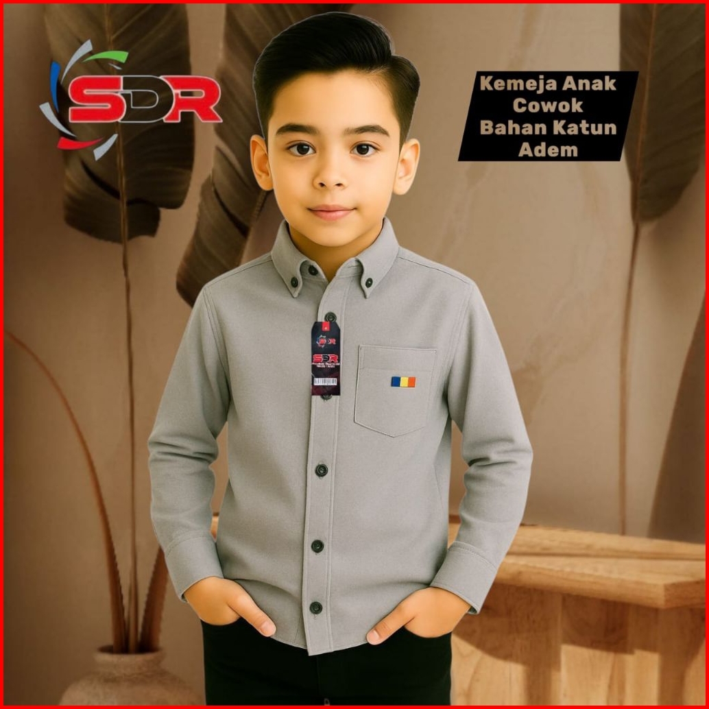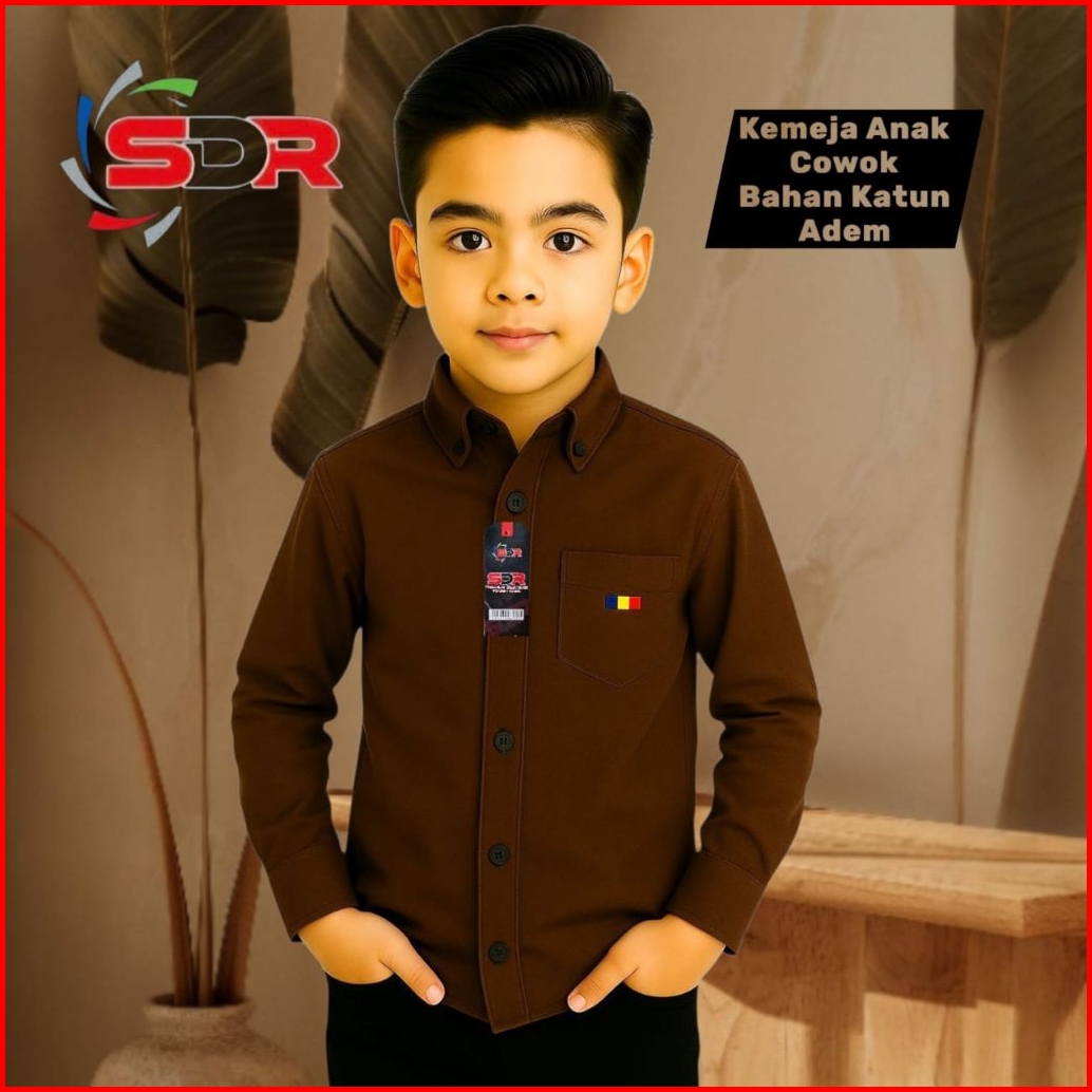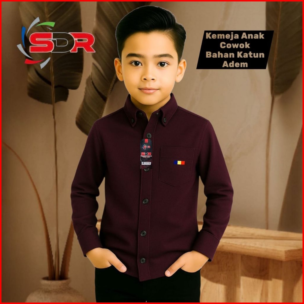 Kemeja Anak Cowok Polos Lengan Panjang Warna Coksu Katun Nyaman - Baju Anak Usia 2-14 Tahun