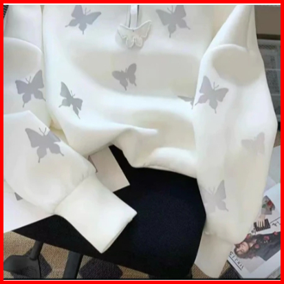 Atasan Wanita Sweatshirt Kupu-kupu Korean Style Lengan Panjang Oversize Zip Up Top Putih