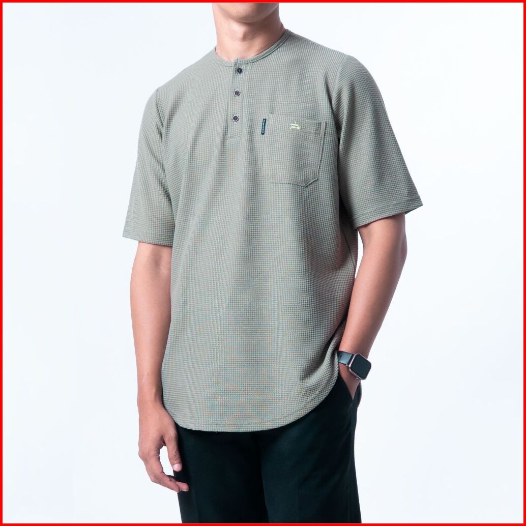 Khoirummah Kurta Uwais Dewasa Baju Muslim Kasual Koko Polos Kurta Pria Lengan Pendek Sage