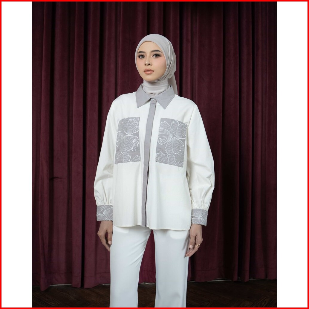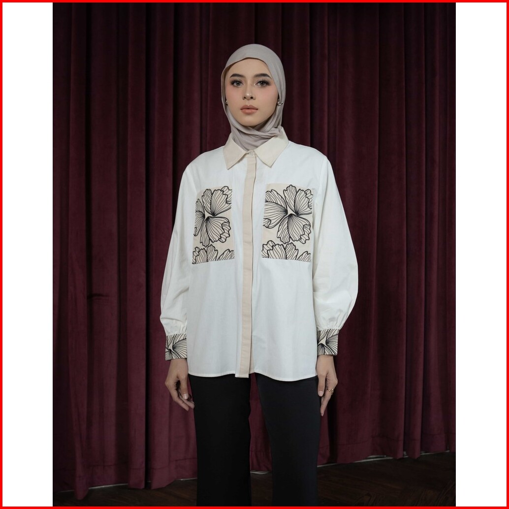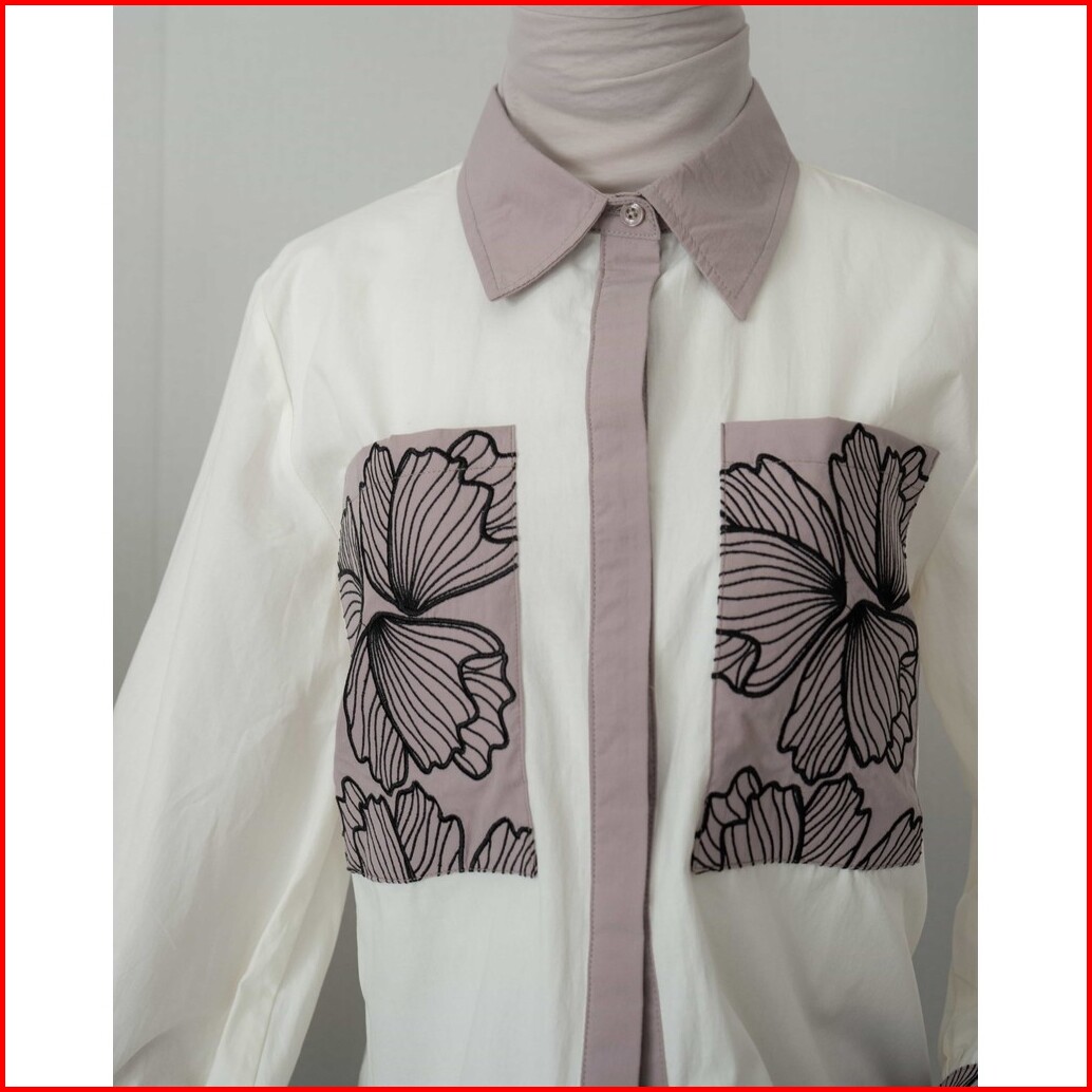 Mayoutfit Naila Shirt Kemeja Poplin Wanita Bordir Patchwork Embroidery