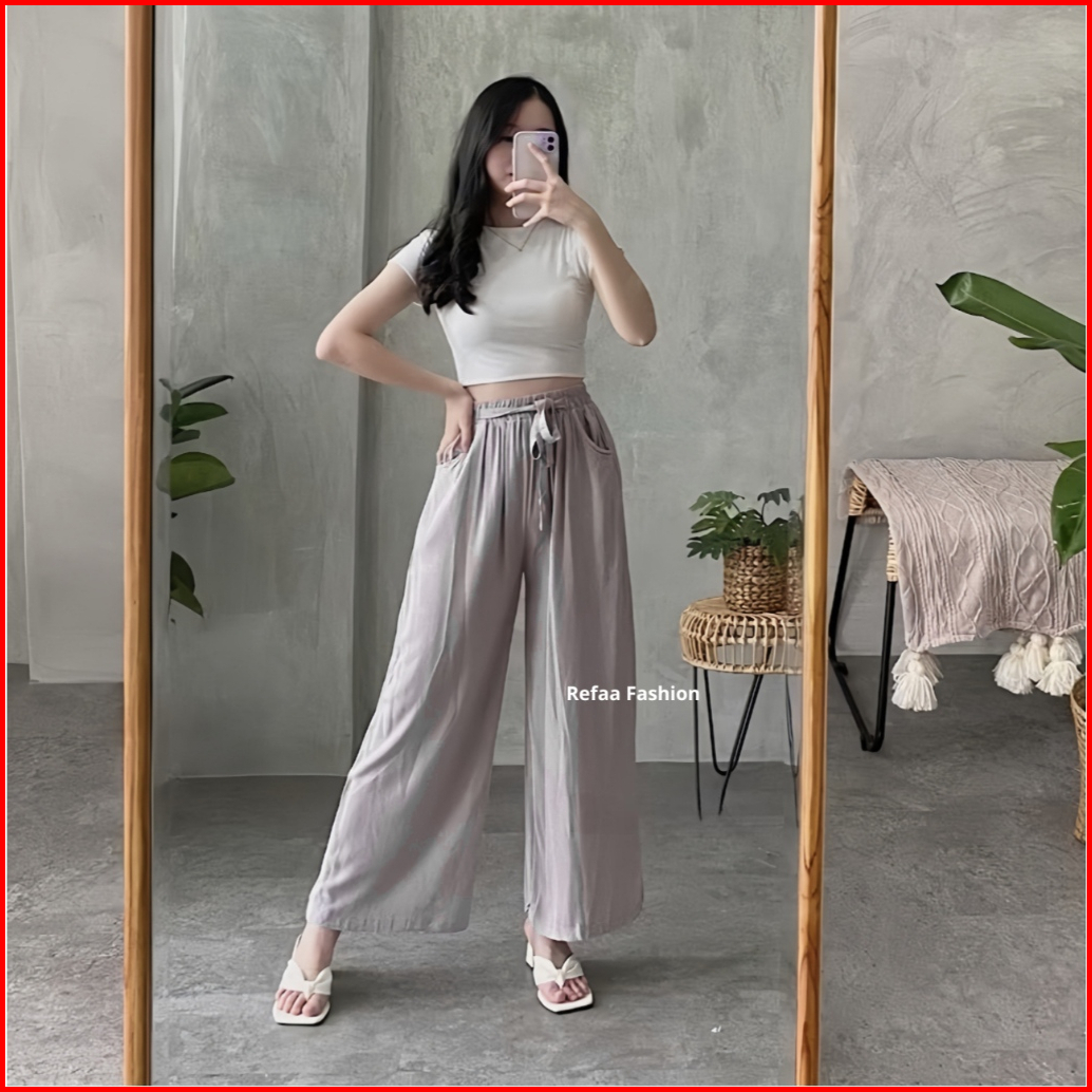 Celana Kulot Gombrong Rayon Twil Premium Panjang Pinggang Full Karet