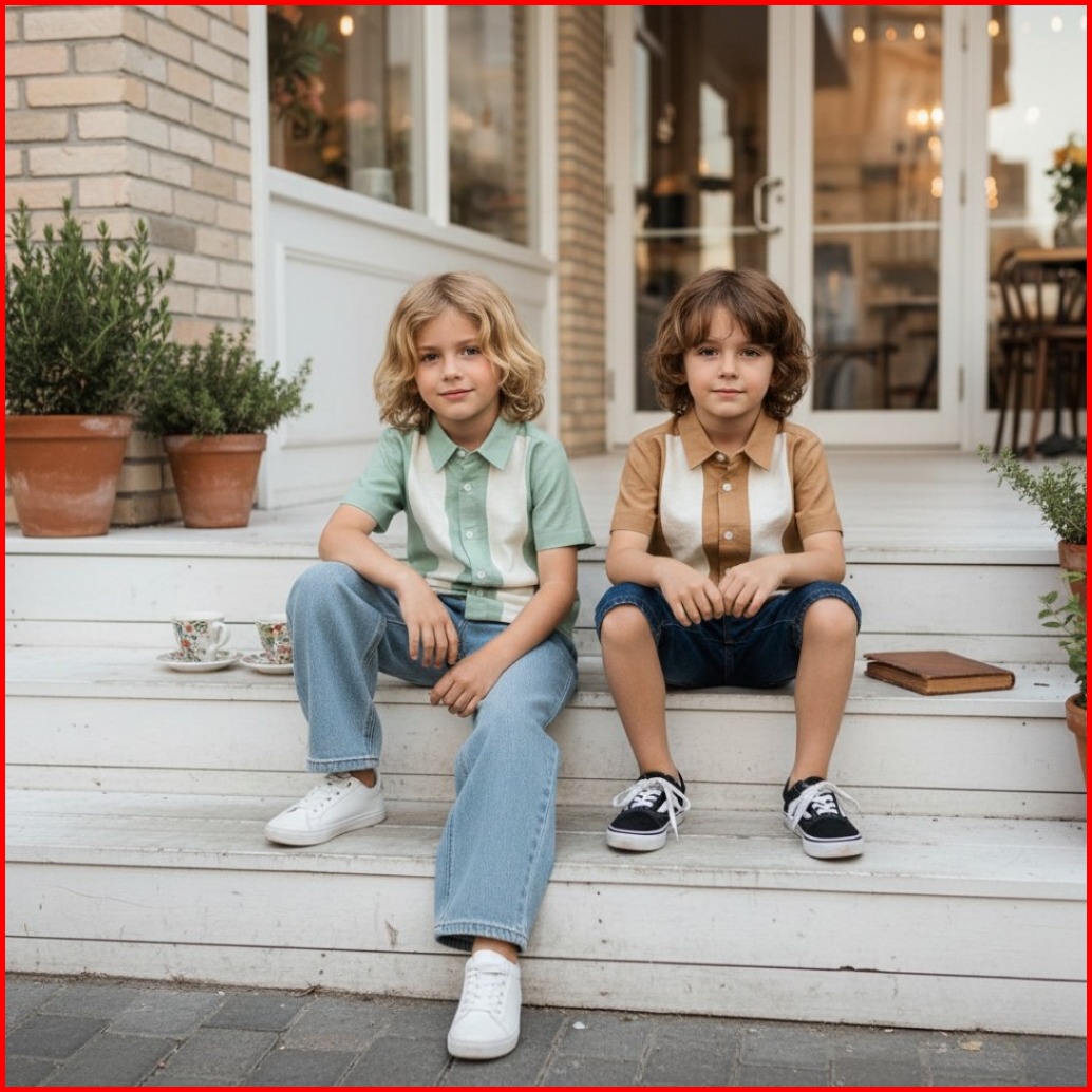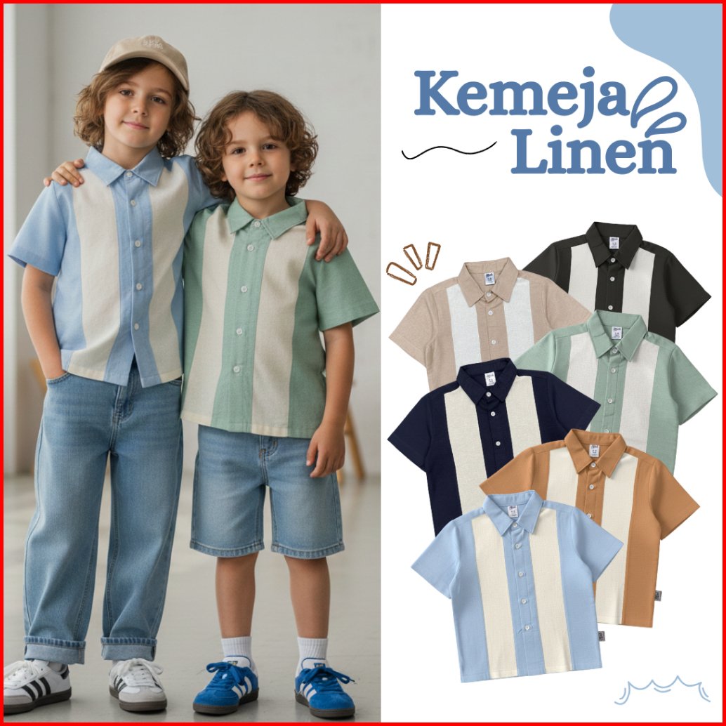 Kemeja Anak Laki-laki Linen Premium Garis Kemeja Casual Kids Boy Short Sleeve Bahan Adem Nyaman Harian 4 - 12 Tahun