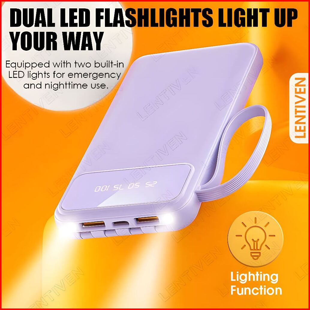 Lj Lentiven Powerbank 30000 Mah Mini Fast Charging With 4 Cable Data Built-in For Android Iphone Led Display