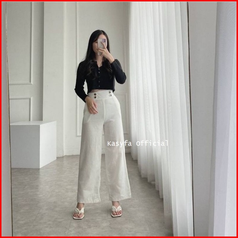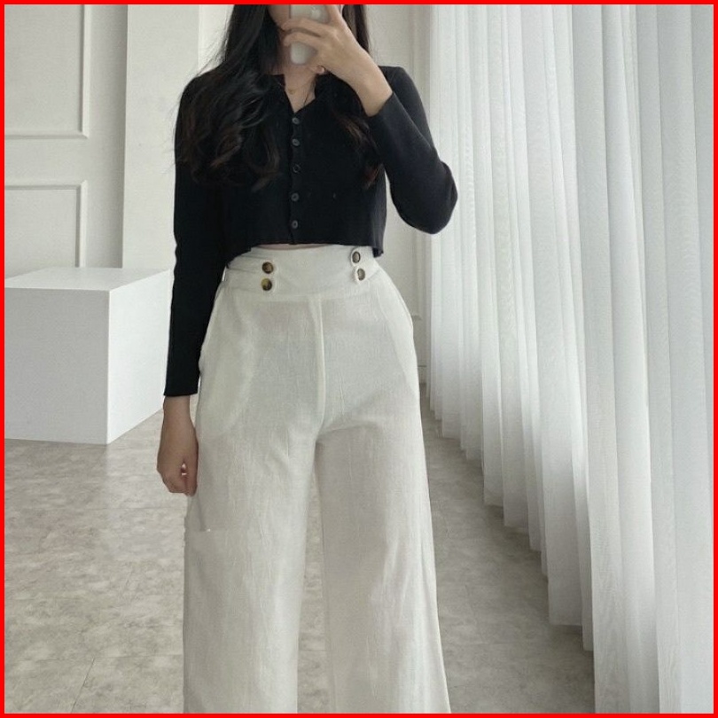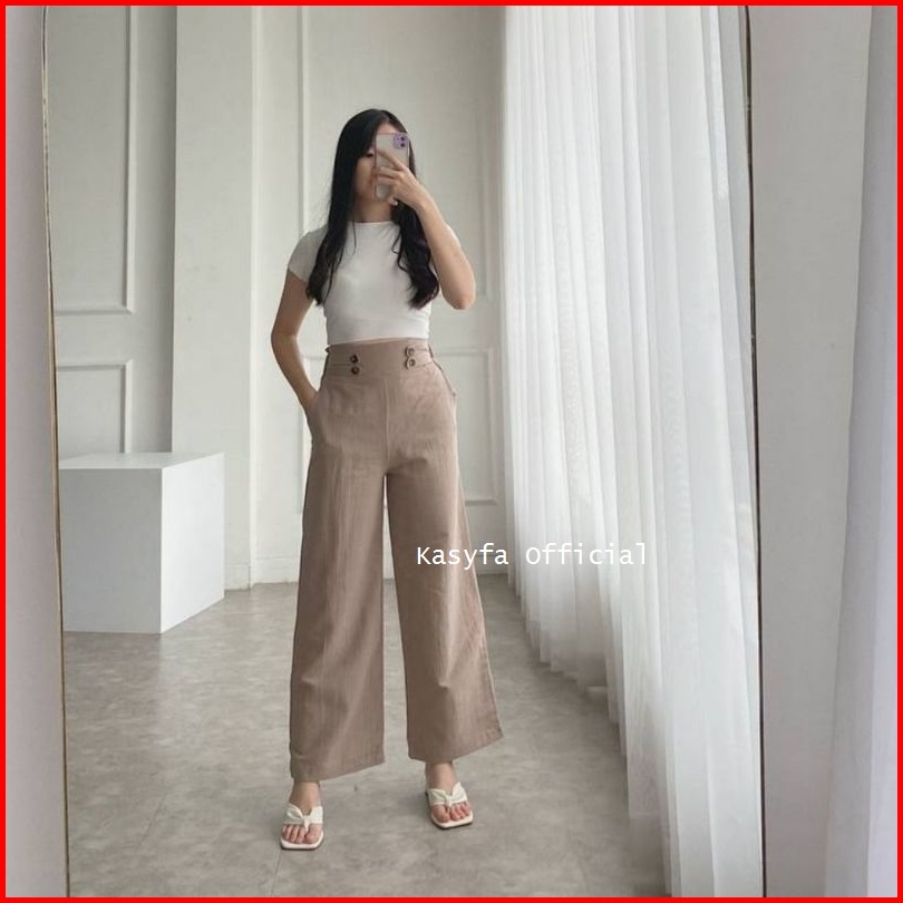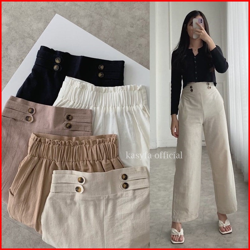 Haruka Kulot Linen Variasi Kancing Samping Linen Highwaist Button Fidda Kulot