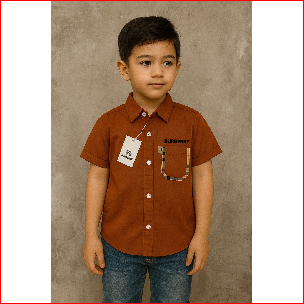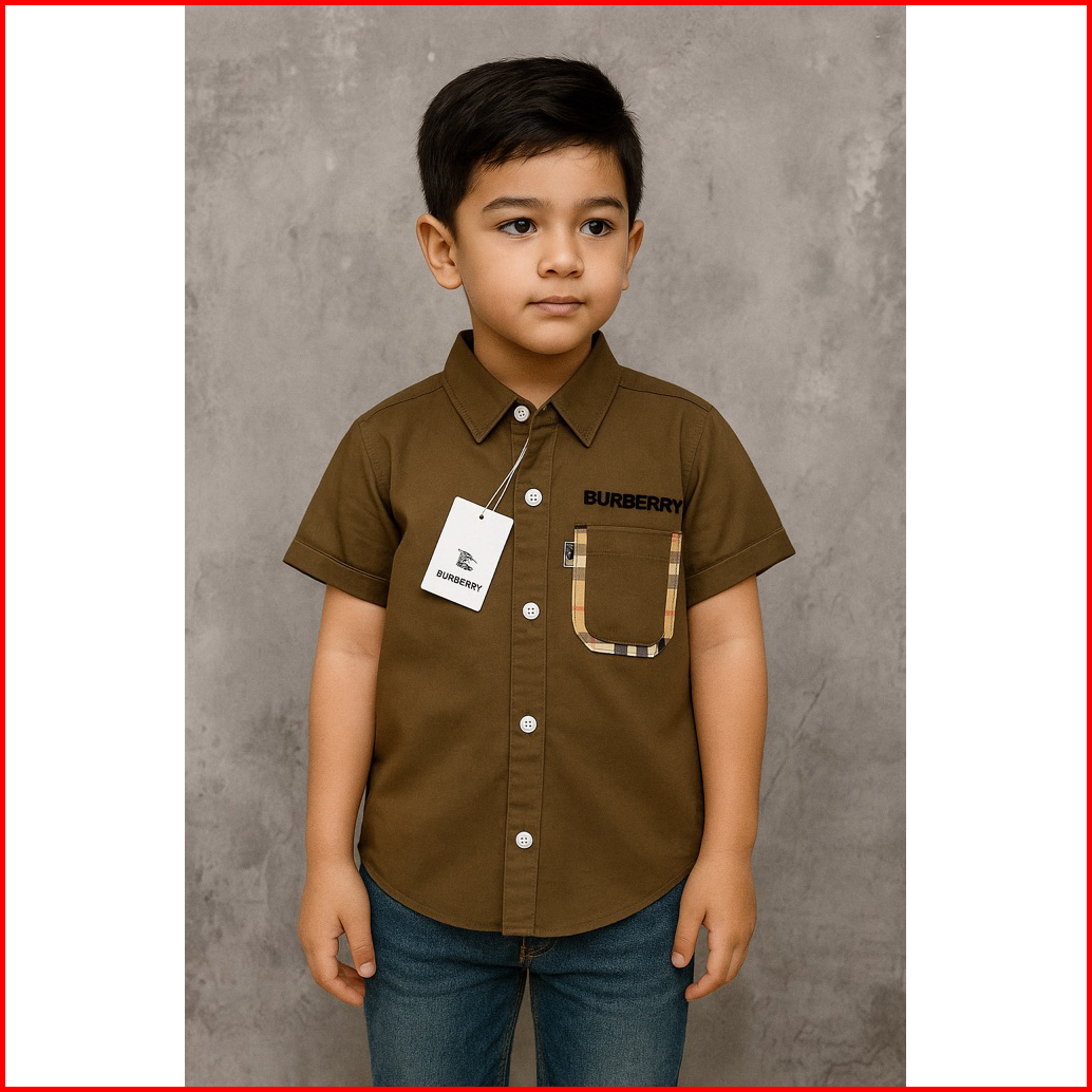 Kemeja Lengan Pendek Anak Laki-laki Terbaru Masa Kini Kemeja Polos Anak Usia 2-12 Tahun Bahan Katun Twill Premium.