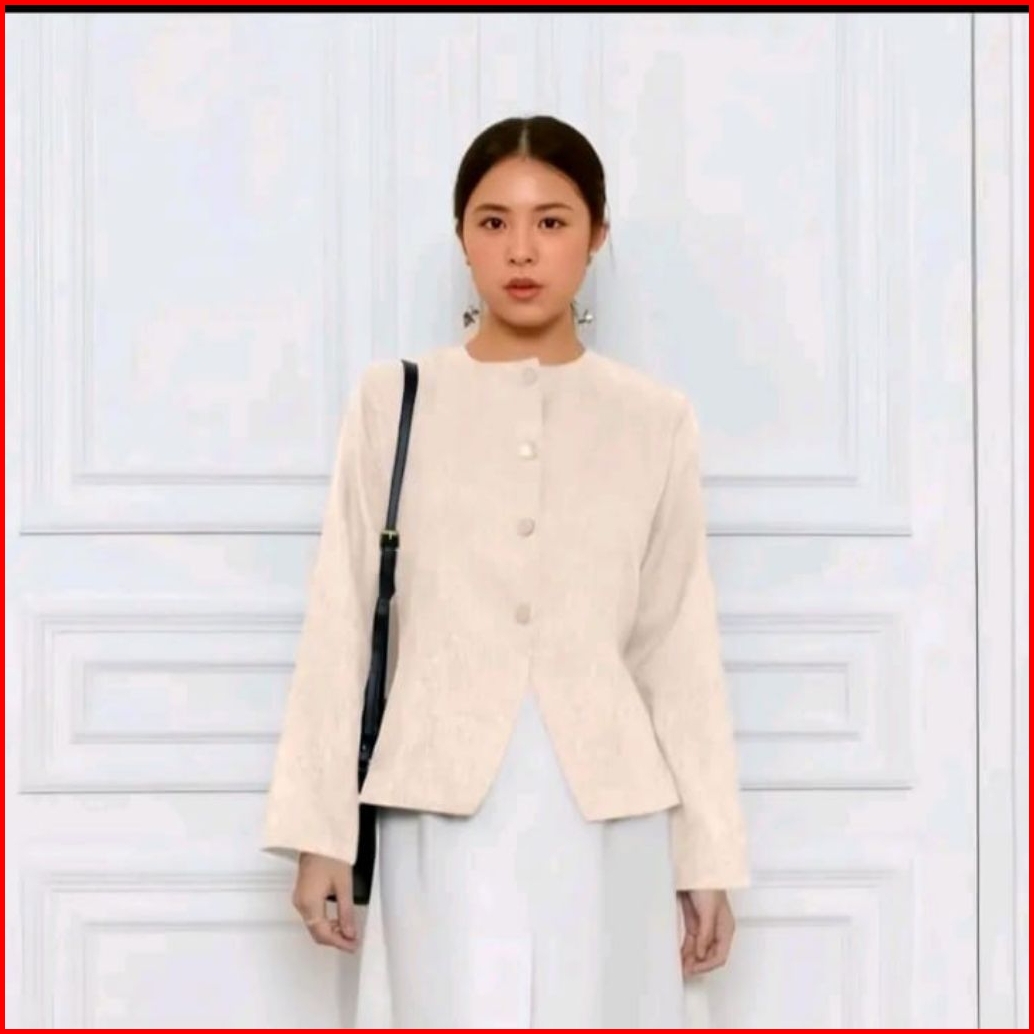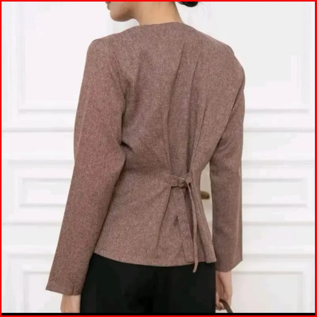 Top Blazer Semiwoll Korean Style Full Kancing Atasan Lengan Panjang