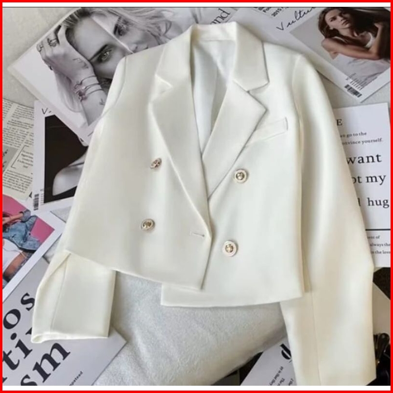 Blazer Crop Lengan Panjang Korean Style Kancing 4